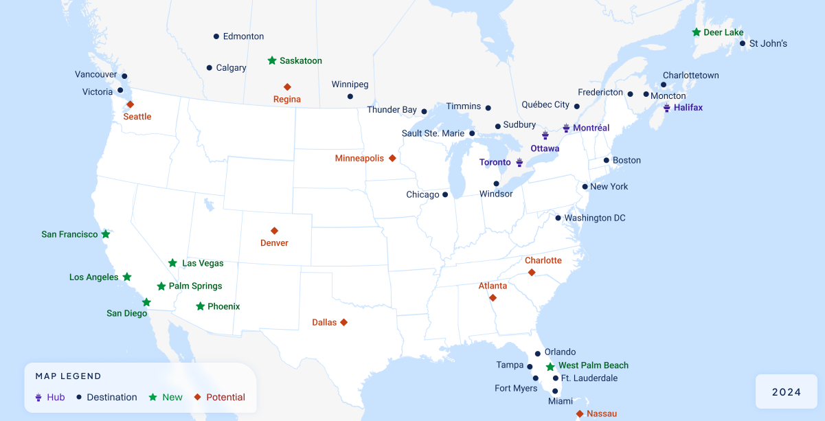 Surprised no Kelowna or Fort Mac on the potential future destinations.
