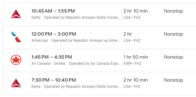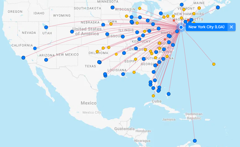 A new 2x Daily on Delta Airlines from YHZ to LGA . American Airlines is also adding 1x daily YHZ to LGA. Halifax-NYC is actually shorter than Halifax-Toronto. Beginning in June 2024 there will be four scheduled daily flights from YHZ to NYC airports: https://i.postimg.cc/1zNqKsXv/nyc.png https://i.postimg.cc/QCLCxTqD/nyc2.png Where you can connect to from New York LaGuardia: https://i.postimg.cc/bwDLSXxR/LGA.png 2024 non-stop to the U.S. Northeast from Halifax Stanfield: Boston Air Canada 1x Daily (78 seat Q400) American Airlines 1x Weekly Seasonal (80 seat E175) New York area airports Air Canada EWR 1x Daily (78 seat Q400) American Airlines LGA 1x Daily Seasonal (80 seat E175) Delta Airlines LGA 2x Daily (80 seat E175) Philadelphia American Airlines 1x Daily Seasonal (128 seat A319) Washington Reagan American Airlines 1x Weekly Seasonal (80 seat E175)[/QUOTE] |