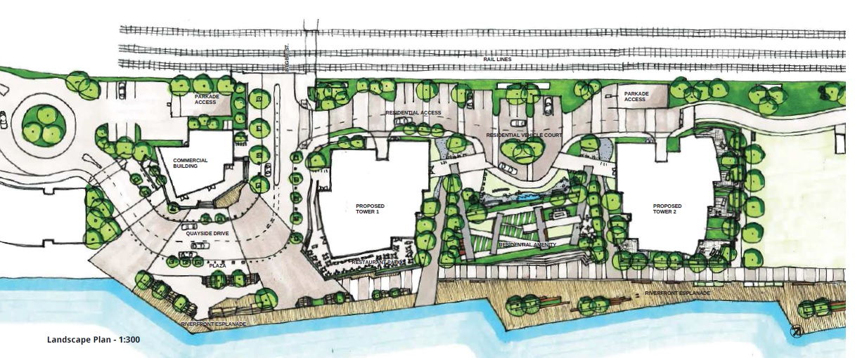 This one will be interesting to watch. A game changer for sure, especially considering that the riverfront trail from Pier Park to Sapperton Landing will likely complete around the same time (ie. 5 years from now). The larger park, improved connectivity, restaurant and all of the density coming into the area should make for a great people place.
