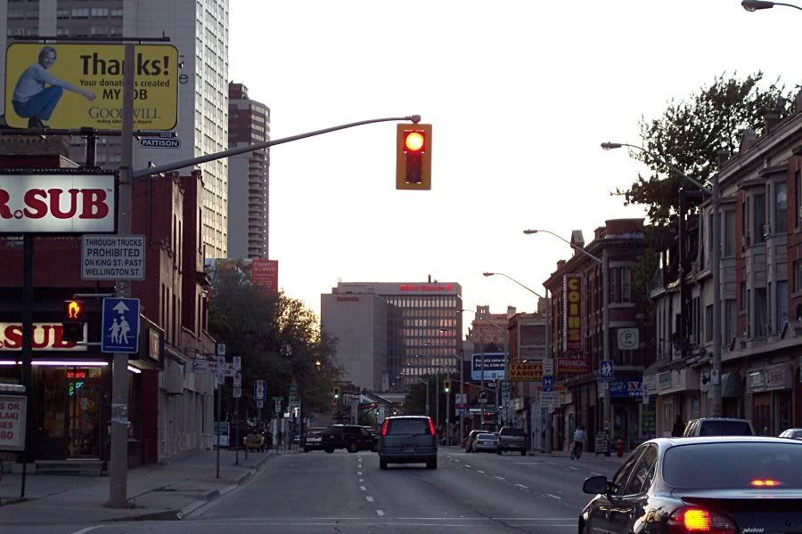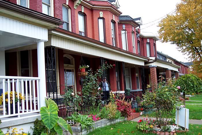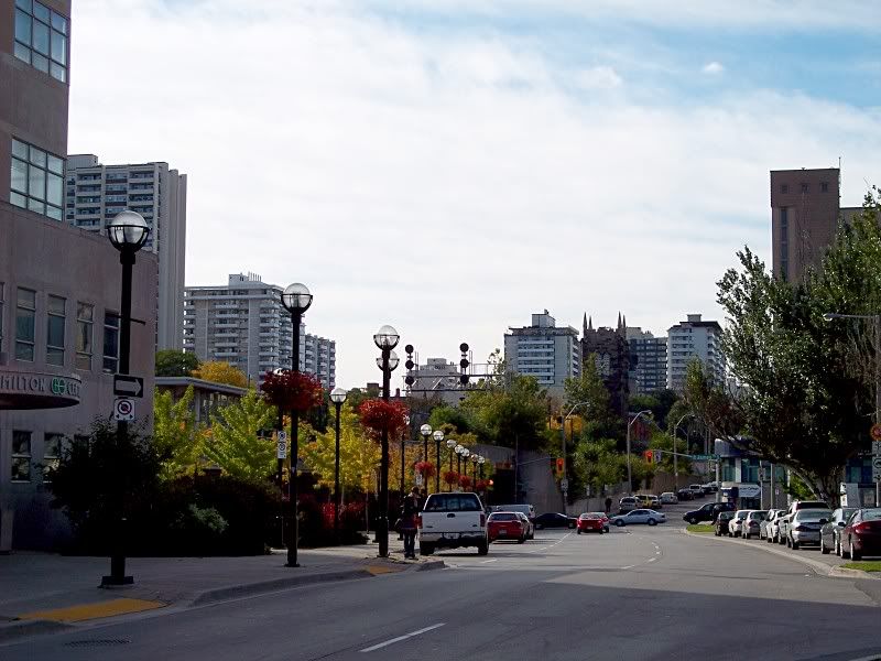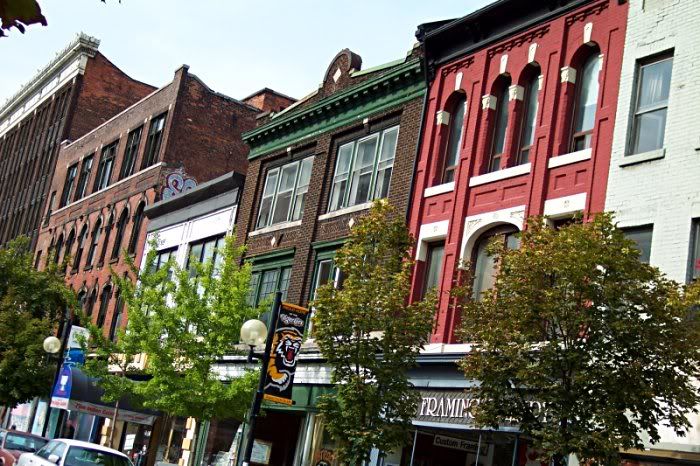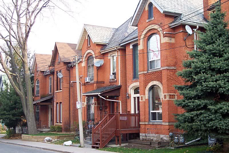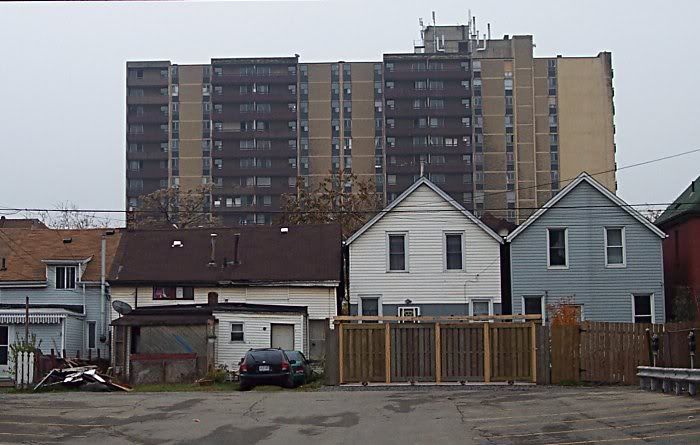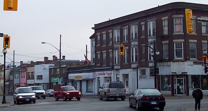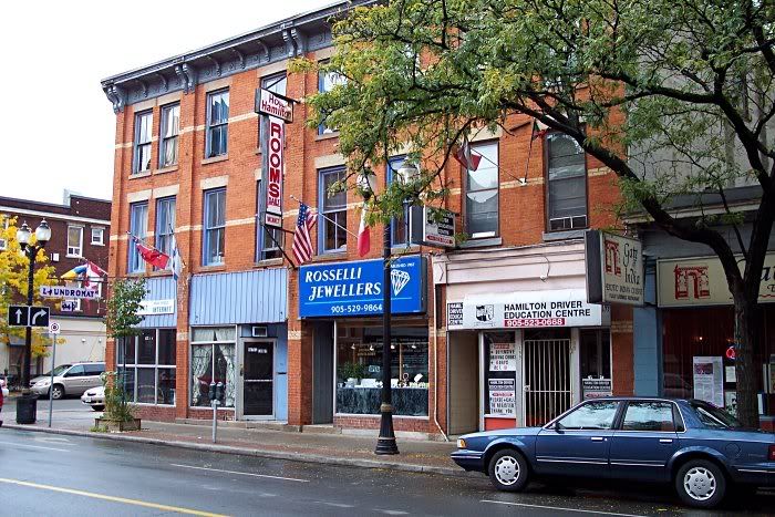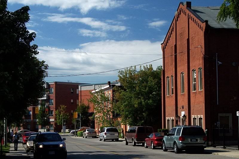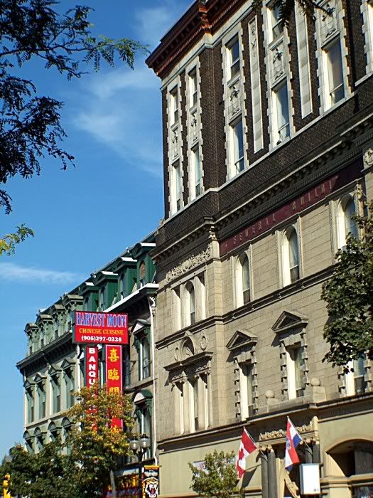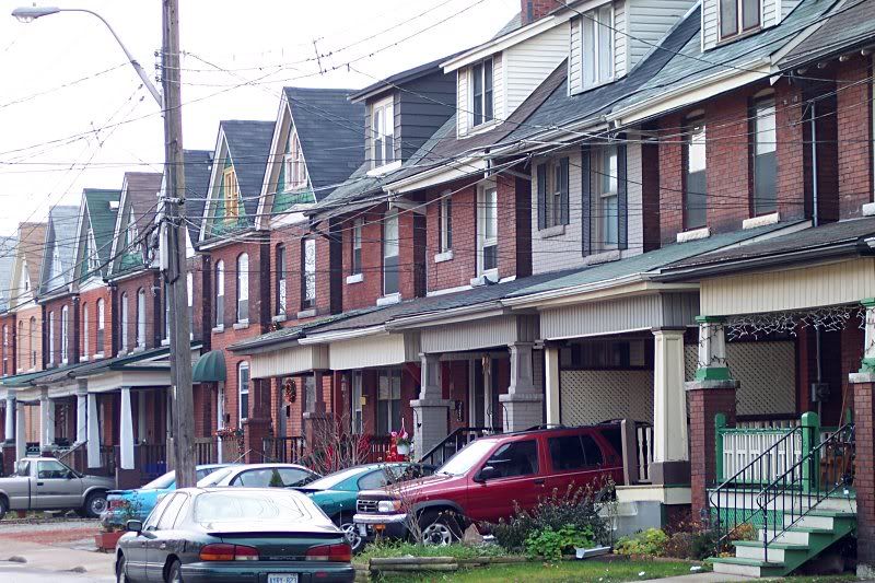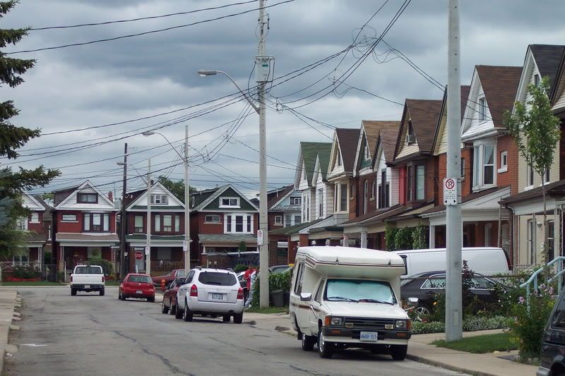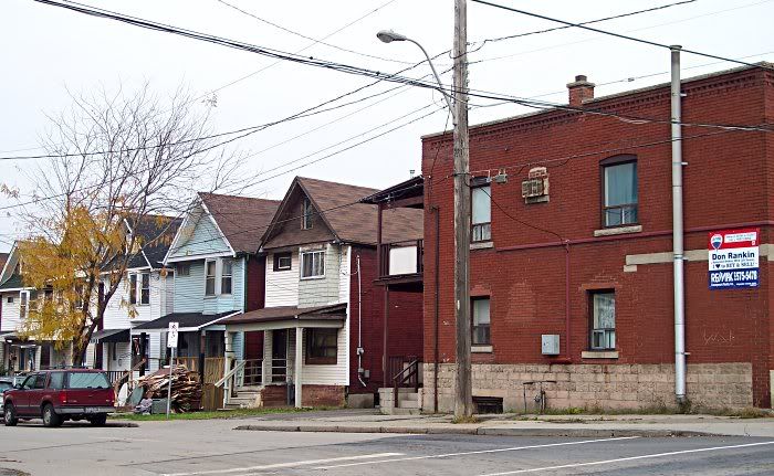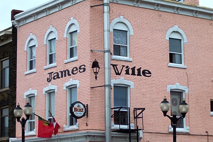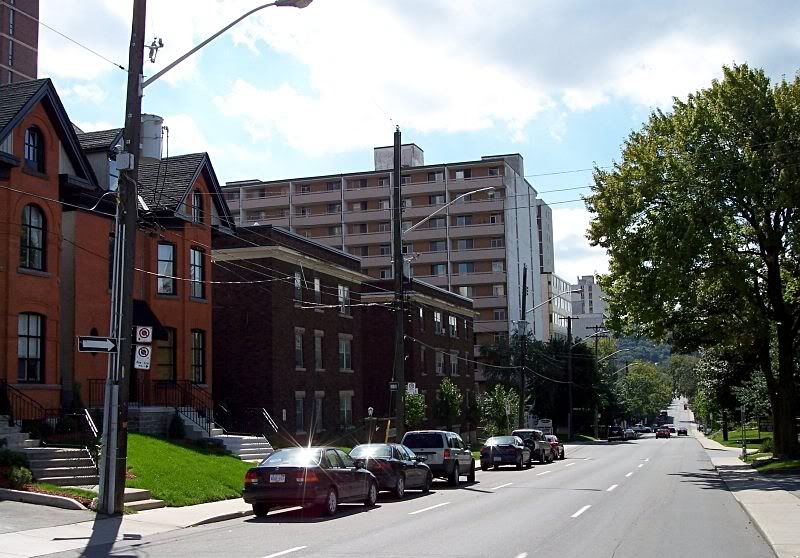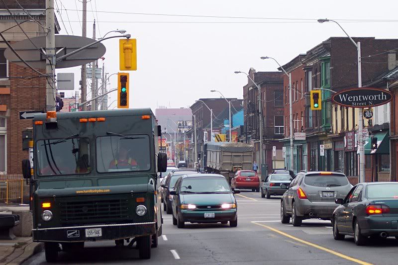 Jamesville is an historic neighbourhood along James St. North. There is a real old world feel here with the colourful homes, lush gardens, outdoor markets and bustling pedestrian traffic. Many languages are spoken in Jamesville, especially Italian and Portuguese. In recent years it has also become the centre of Hamilton's arts community. Here's Jamesville on a rainy Friday morning: