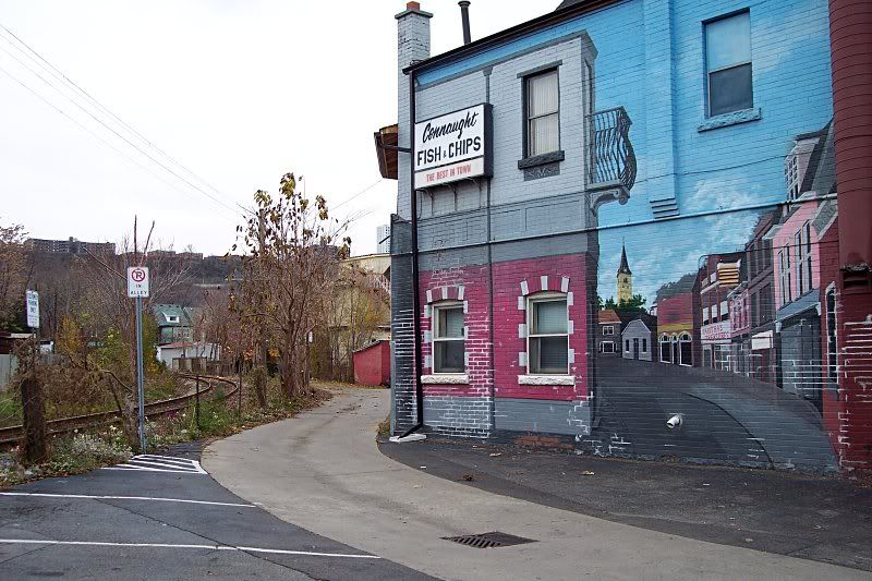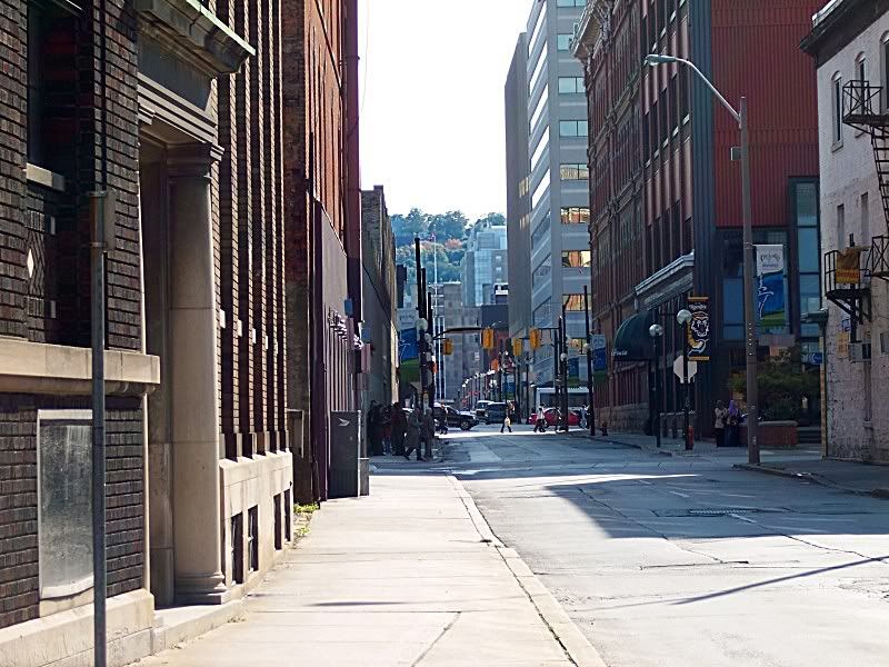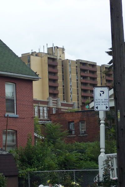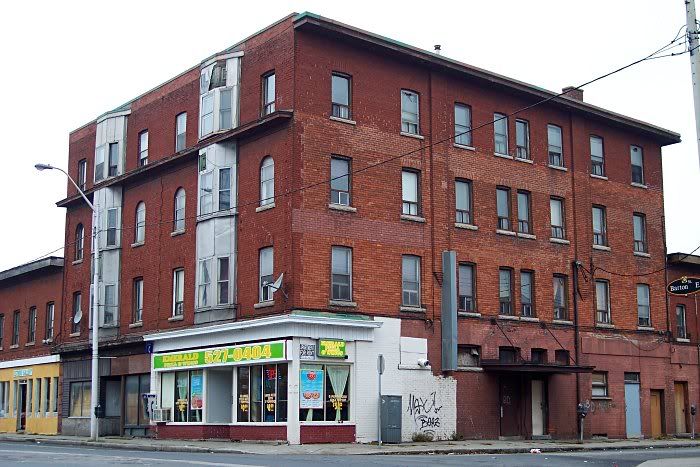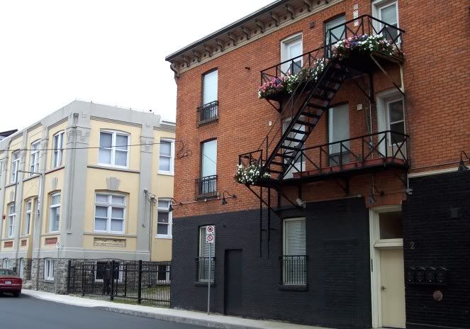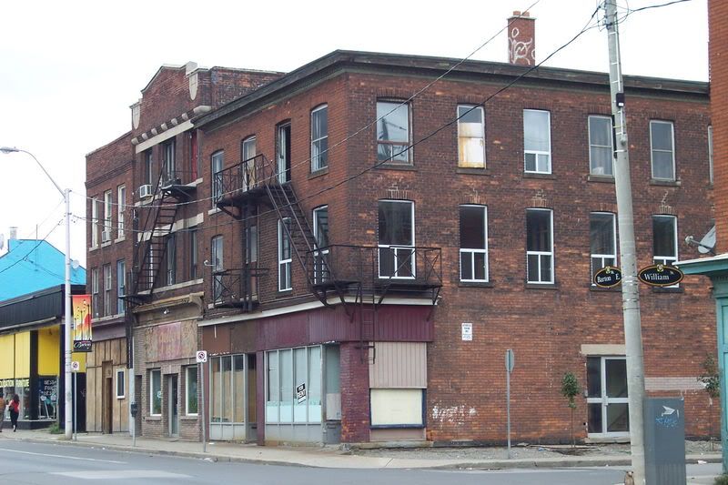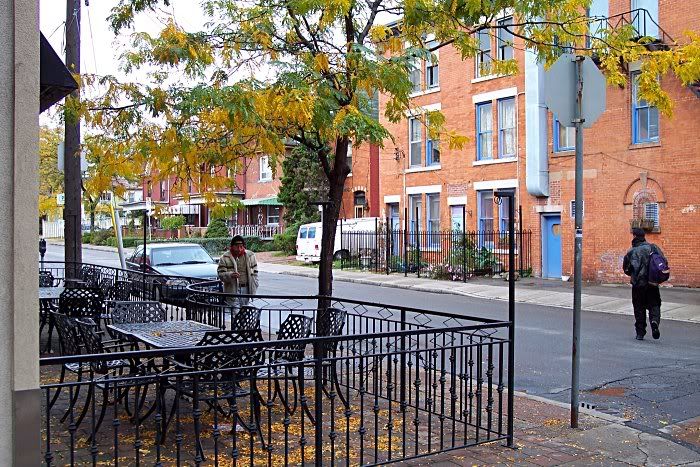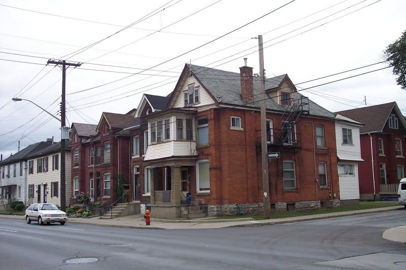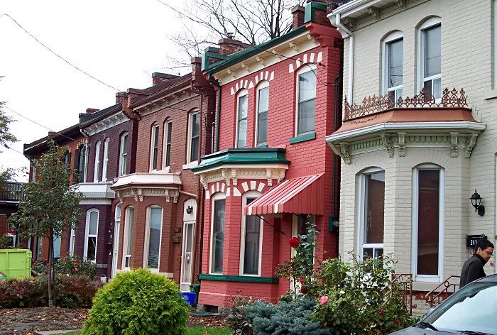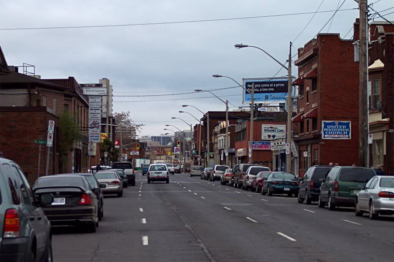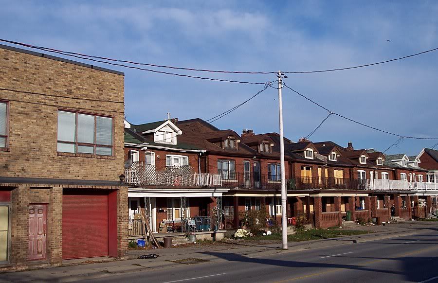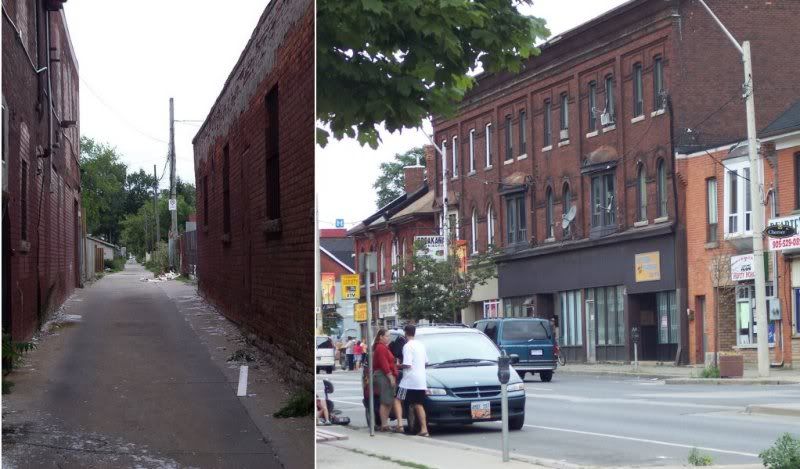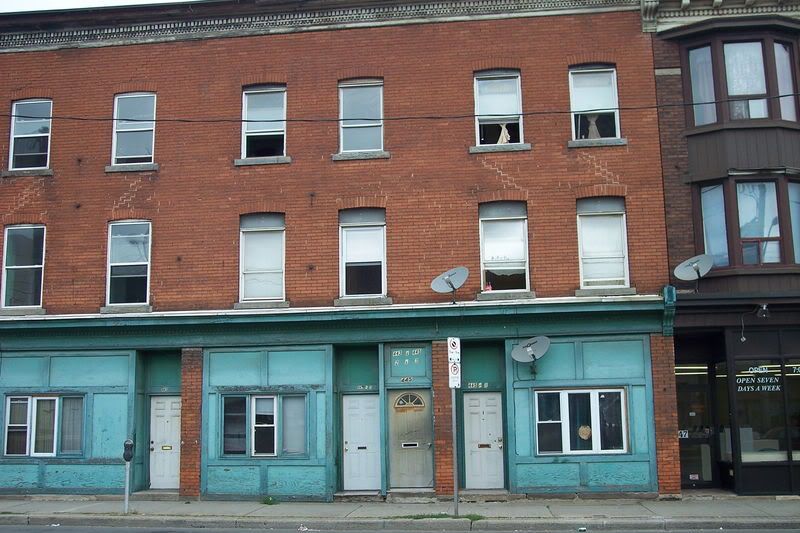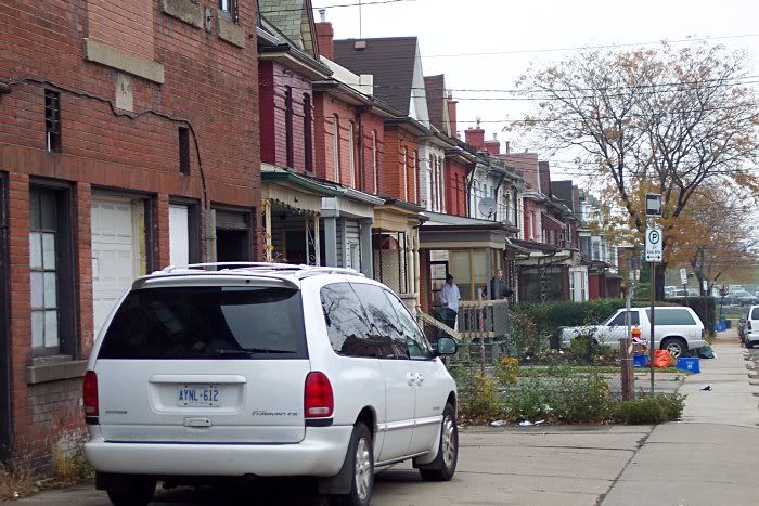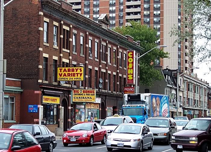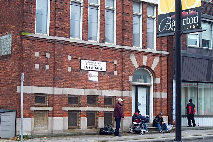 Jamesville is an historic neighbourhood along James St. North. There is a real old world feel here with the colourful homes, lush gardens, outdoor markets and bustling pedestrian traffic. Many languages are spoken in Jamesville, especially Italian and Portuguese. In recent years it has also become the centre of Hamilton's arts community. Here's Jamesville on a rainy Friday morning: