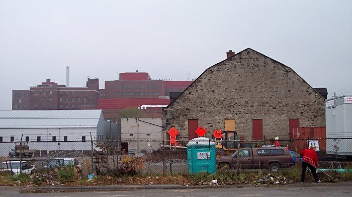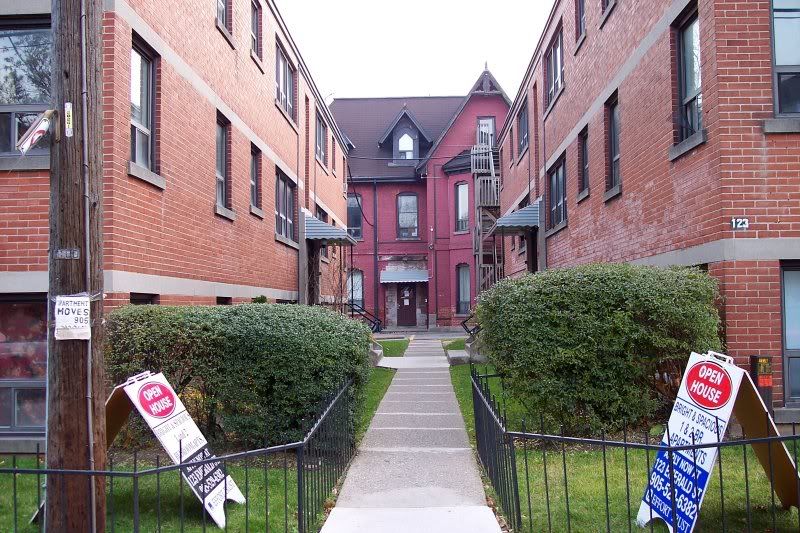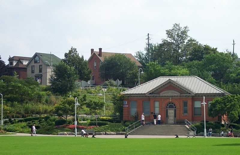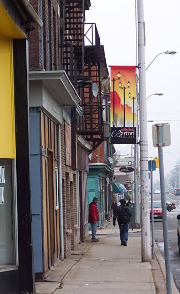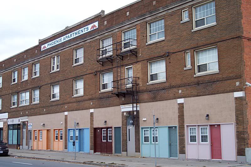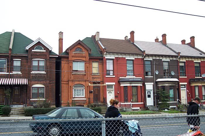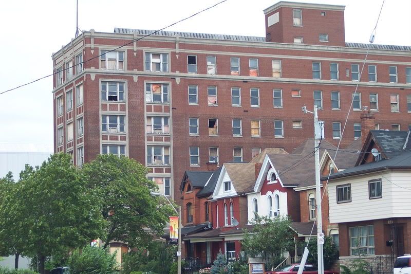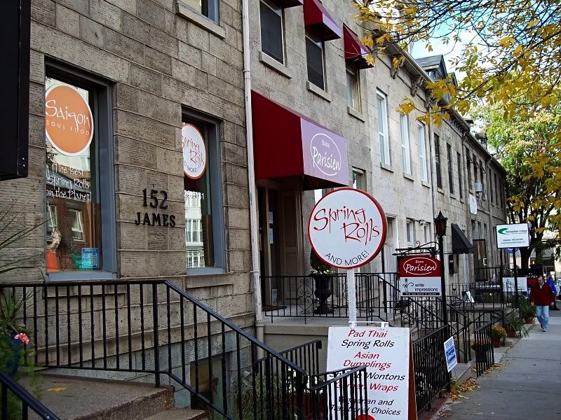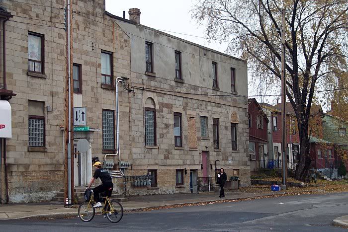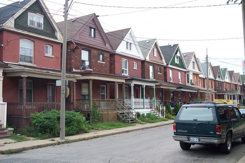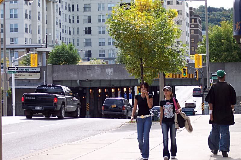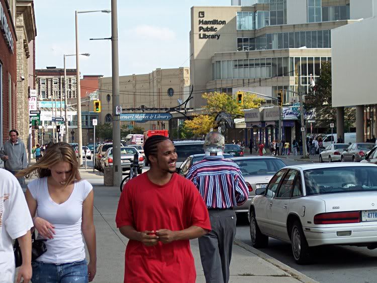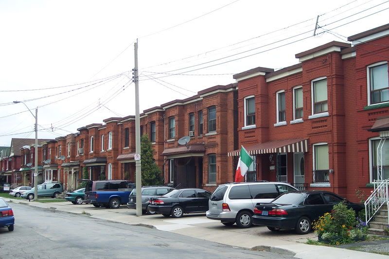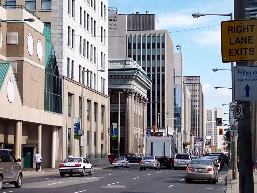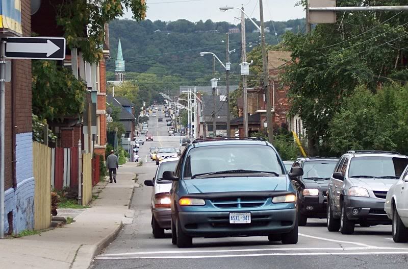 Jamesville is an historic neighbourhood along James St. North. There is a real old world feel here with the colourful homes, lush gardens, outdoor markets and bustling pedestrian traffic. Many languages are spoken in Jamesville, especially Italian and Portuguese. In recent years it has also become the centre of Hamilton's arts community. Here's Jamesville on a rainy Friday morning: