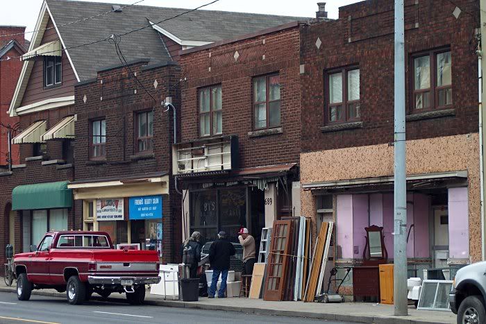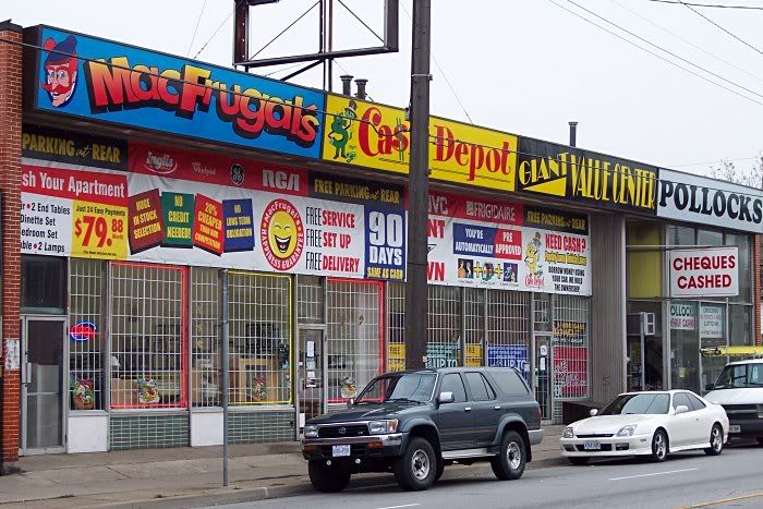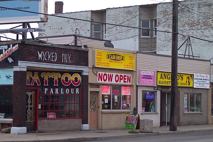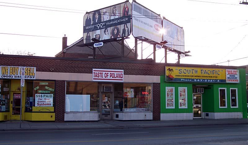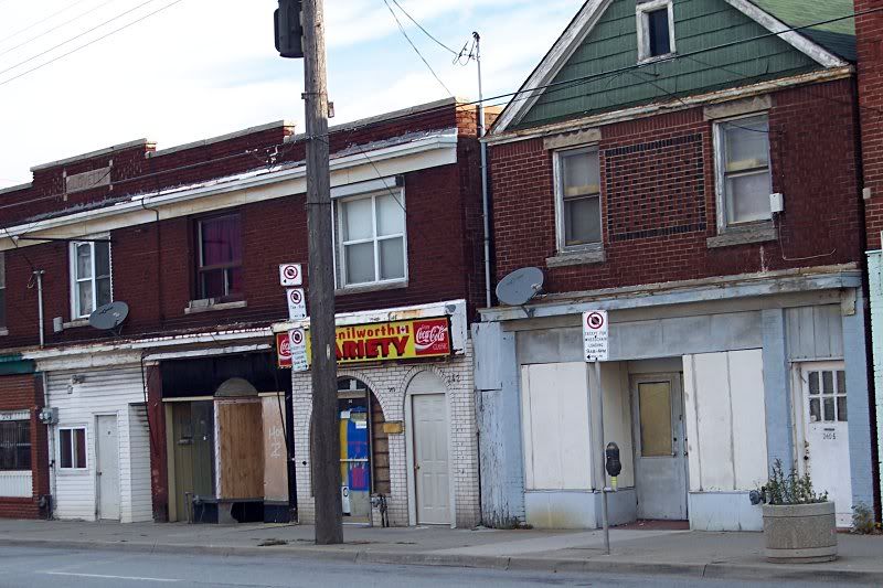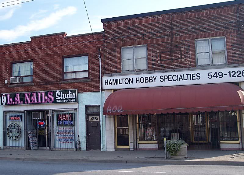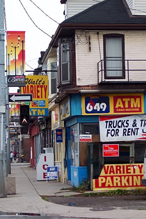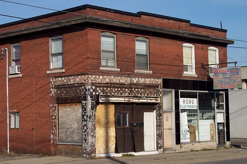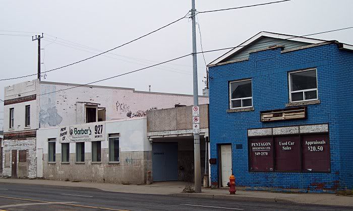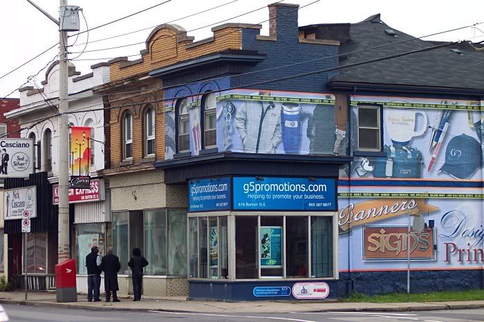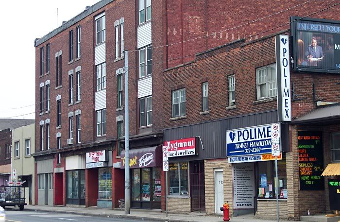 This is a series of photos I took on Kenilworth Avenue in Hamilton. I forgot about these pics, which is appropriate because I think the city forgot about this street too: it was really dirty, and the flower planters had weeds growing out of them and the massive wooden utility poles stand out. There's a strong Eastern European presence around Kenilworth. While most of the shops are closed, strangely enough, the remaining shops are unique specialty shops (try to spot them).