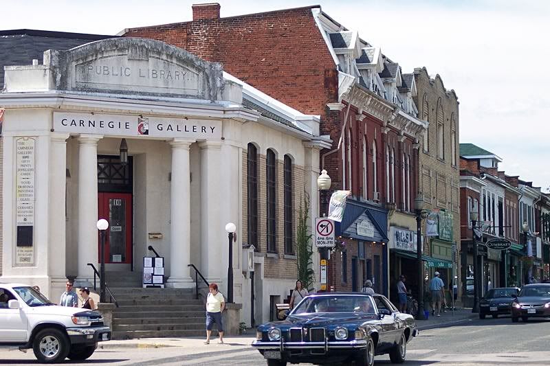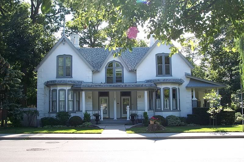 Historic town of 25,000, western suburb of Hamilton, setting for numerous movies and TV shows.