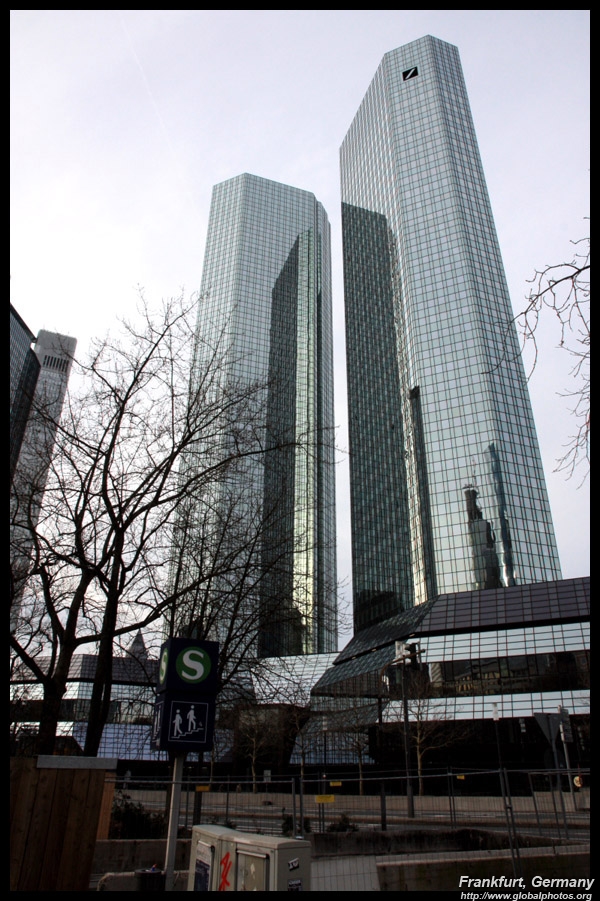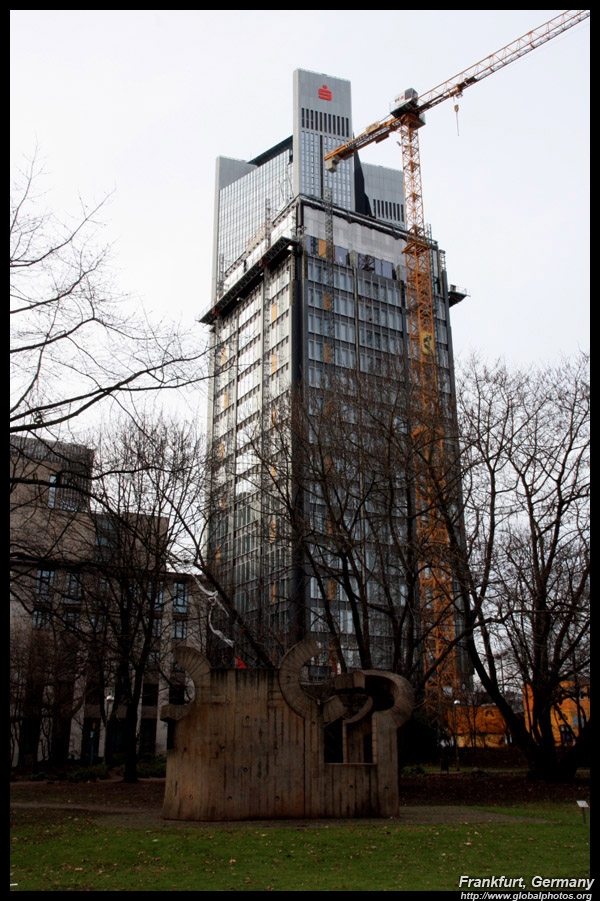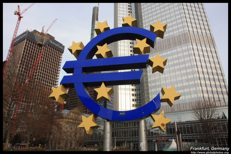 The 149m Eurotower is the headquarters of the European Central Bank. The euro logo is eeringly on display in the lawn outside as several member countries come on the verge of economic collapse.