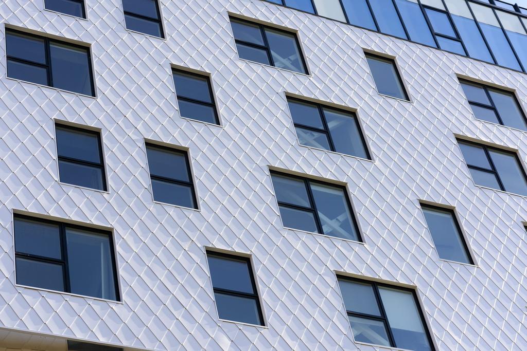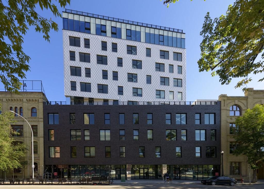 The brick and stone (?) embedded precast panels aren't great but, I don't think they are the worst cladding in the country. From there, everything else is leading to one of the ugliest buildings in the country. The windows are horrid. You couldn't have picked a worst mullion colour, white and, window design for a traditional designed building. I can't wait for the shaft of the building which is either bland beige pre-cast or EIFS panels.