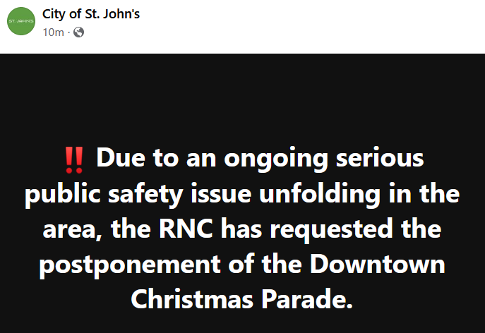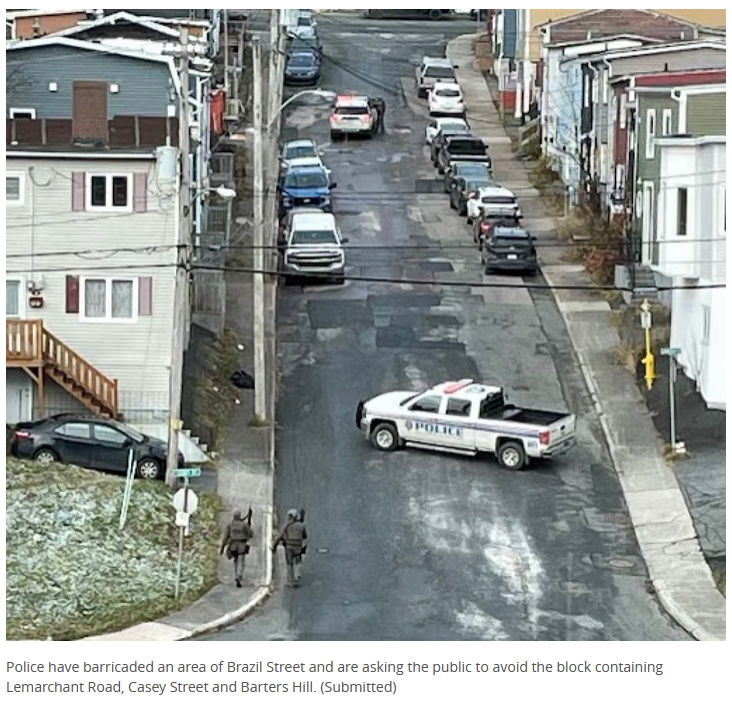 EDIT: I heard two bangs/booms this morning. Assumed it was just work at the dry docks, but there's been some kind of stand off ongoing on Brazil Street which is roughly the same direction from my place. And now the Royal Newfoundland Constabulary has cancelled the Christmas parade and warned the thousands downtown to go home without going handy to Brazil Street.