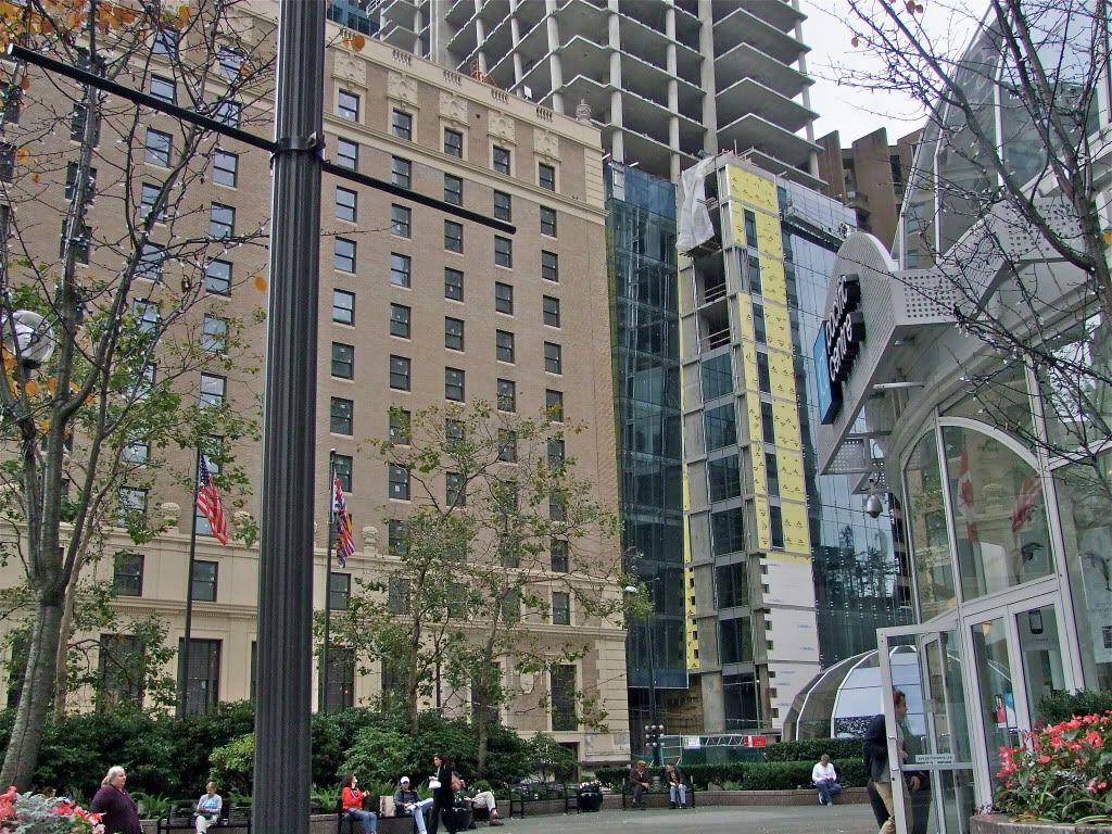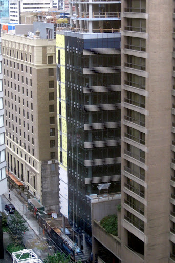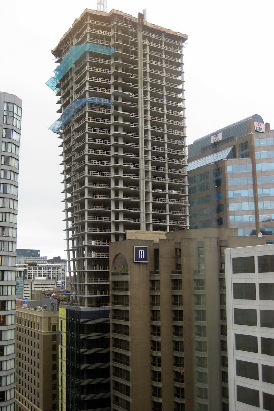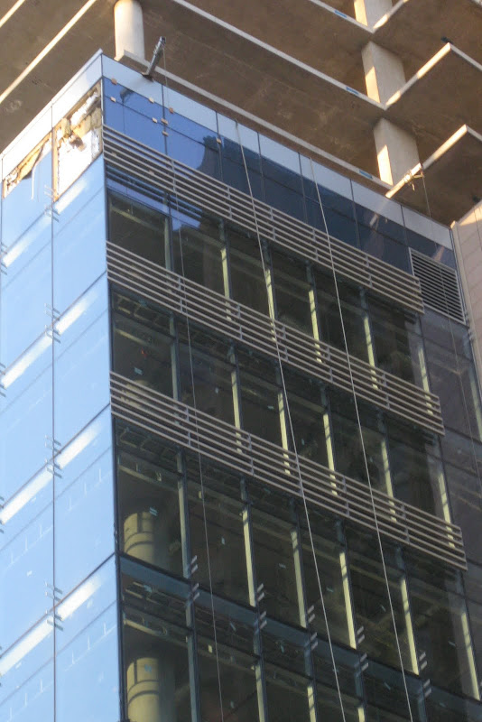 Could they be an element for added privacy, as there are so many hotels, tourists with cams, looking out their windows: "Nice skirt," that sort of thing? Practical thinking from the 'tects, I think. Has anyone done a survey of the percentage of telescope owners to residents in dwntwn Van? I know it's high, especially in Yaletown, where the stars shine every night, but they aren't in the sky! I digress. I think these accents provide added privacy, while not blocking the needed natural light. And they are 'business like'.
