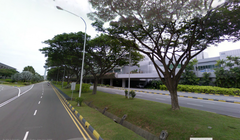 This is one of the views a visitor to what recently was rated as the best airport in the world....changi airport in singapore....will see when traversing the main road around its terminals......
