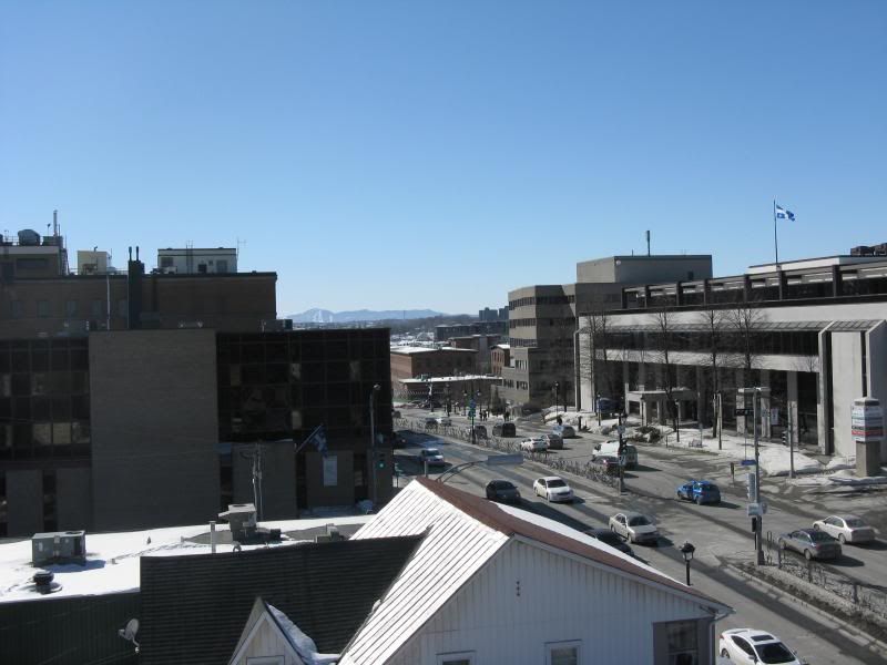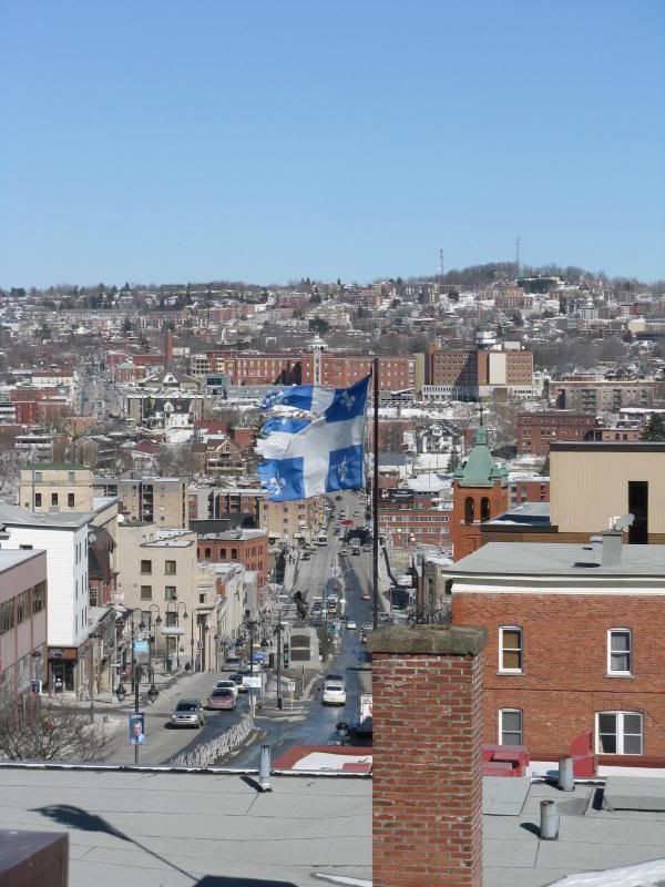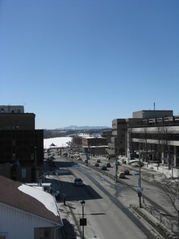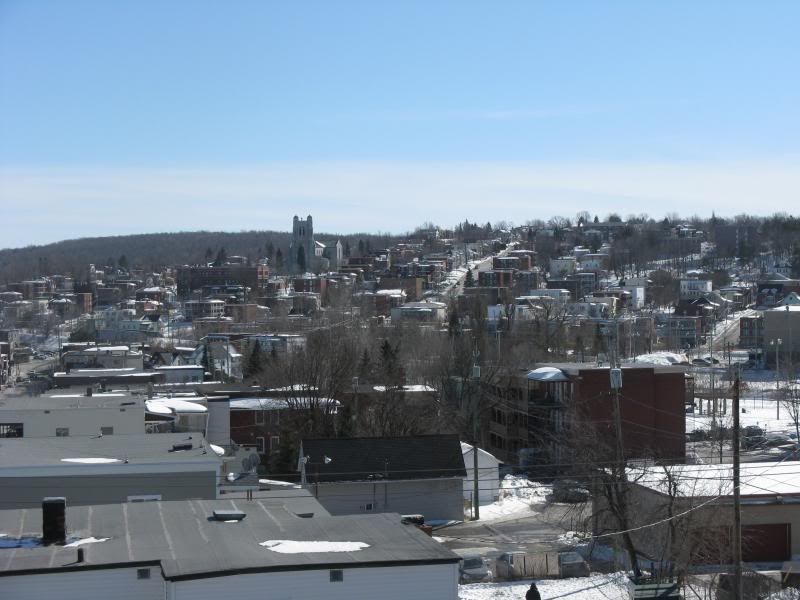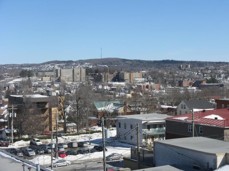 A quick and cheapo 360 degree view of downtown Sherbrooke from a single point of view (rooftop on top of downtown hill, top of that hill is the closest thing we have to a CBD) a few minutes ago. Weather was absolutely beautiful, though. Super warm.