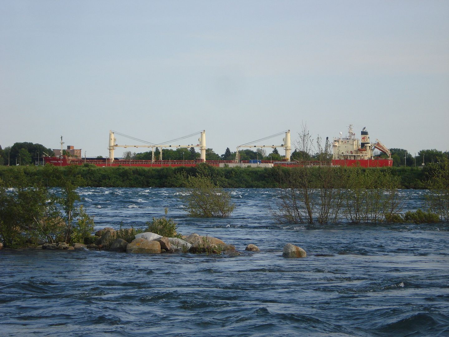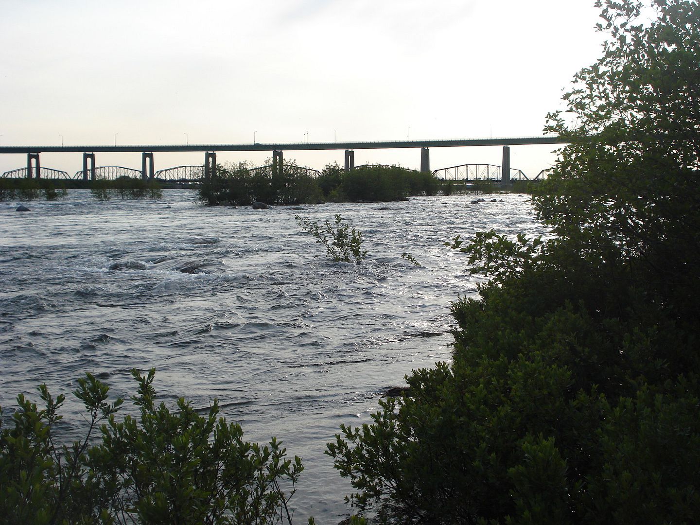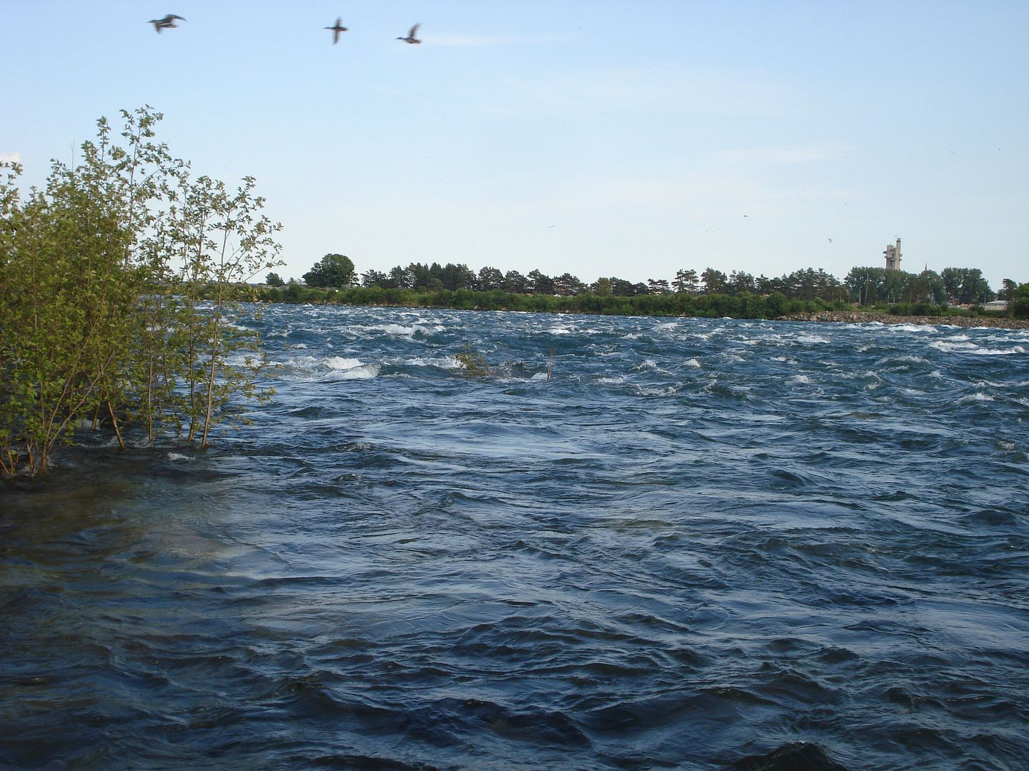 Some pictures of the rapids. There is a concrete barrier that divides the rapids from the islands but the water is so high that it's just flowing over it.