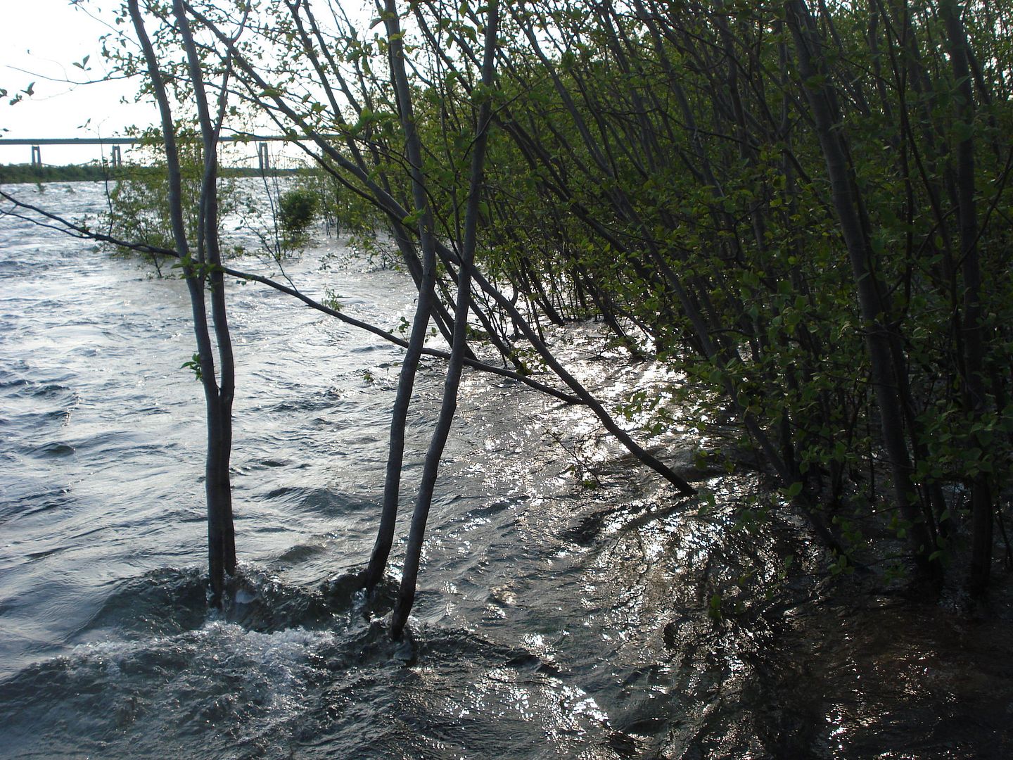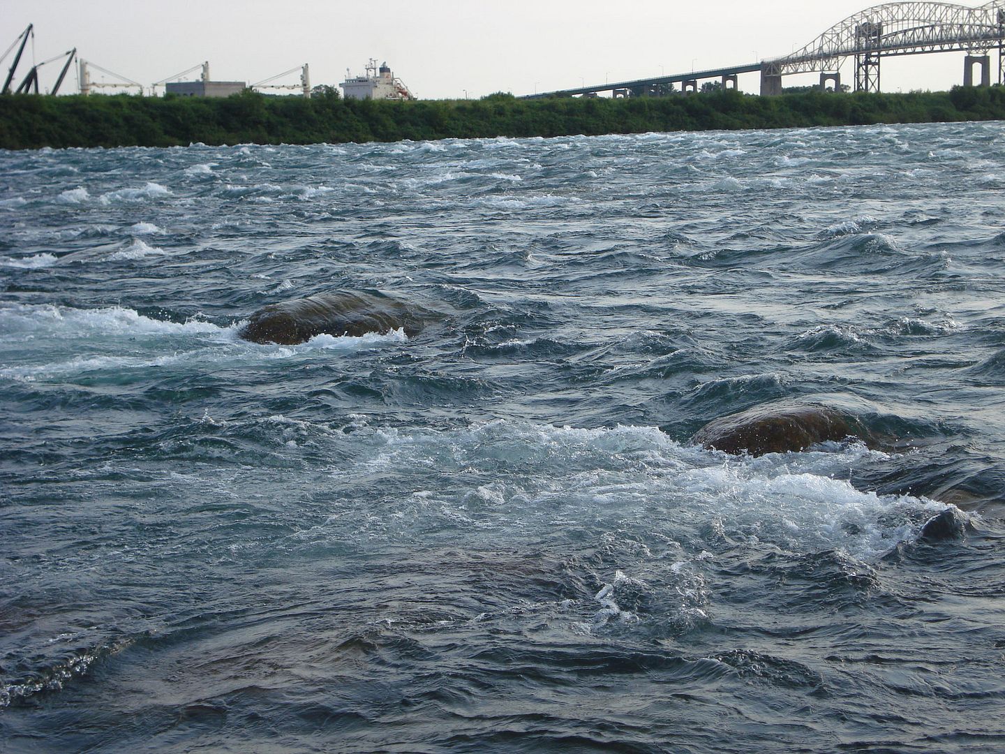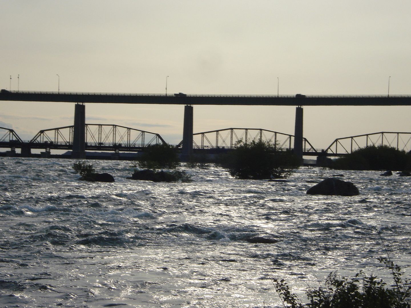 Some pictures of the rapids. There is a concrete barrier that divides the rapids from the islands but the water is so high that it's just flowing over it.