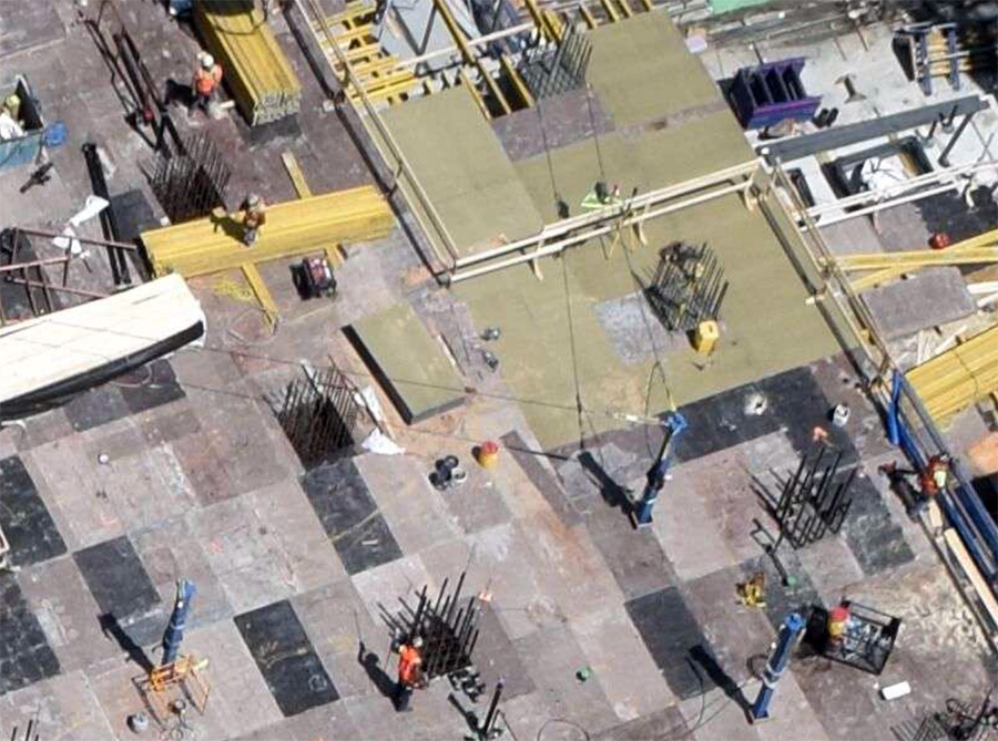 Sounds good, but for some reason I've let to see a photo where somebody does that, and there are plenty of photos showing workers right near the edge which is where fall protection is needed. Also, why have them in the middle of the slab and not near the edges?