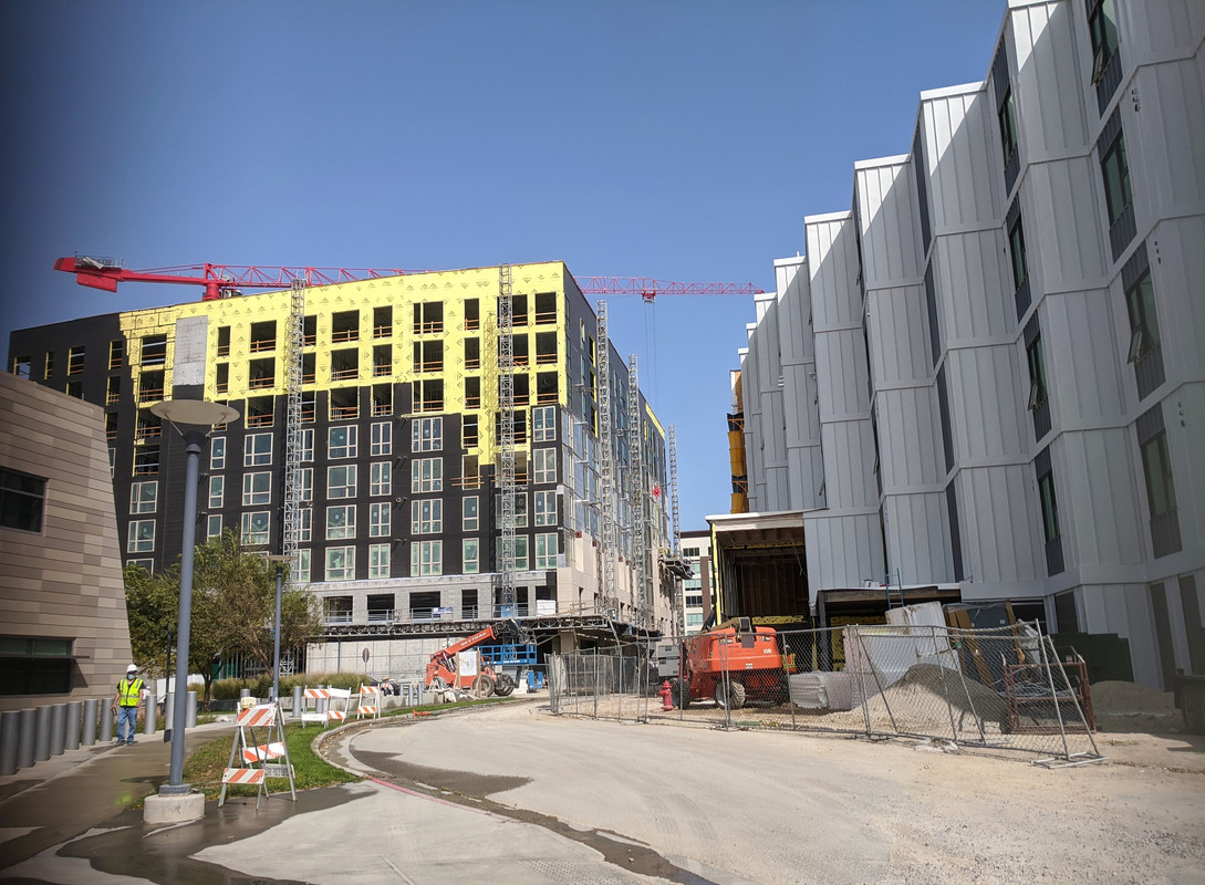 Hey Orlando, This was the latest photo taken on July 29th from Facebook. Pamela's Place pictured in the background and Ecobox in the foreground. I imagine they've made some vertical progress since this pic was taken. I noticed in those Deseret News photos of Sept 15th opening of Pamela's Place, you can see a glimpse to the right of Ecobox. They're apparently at least up to the 2nd floor. Maybe, if someone is in the area they can grab a couple of pics with their phone.