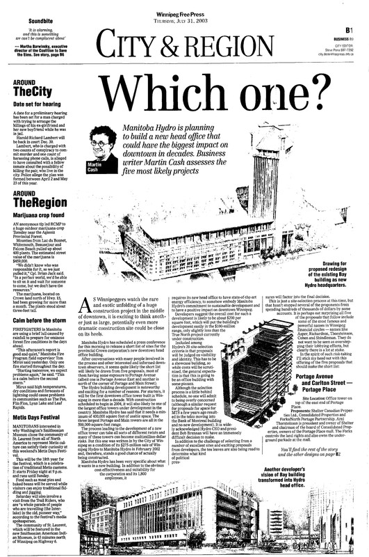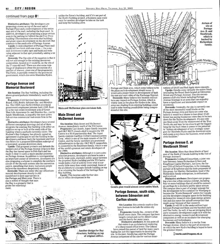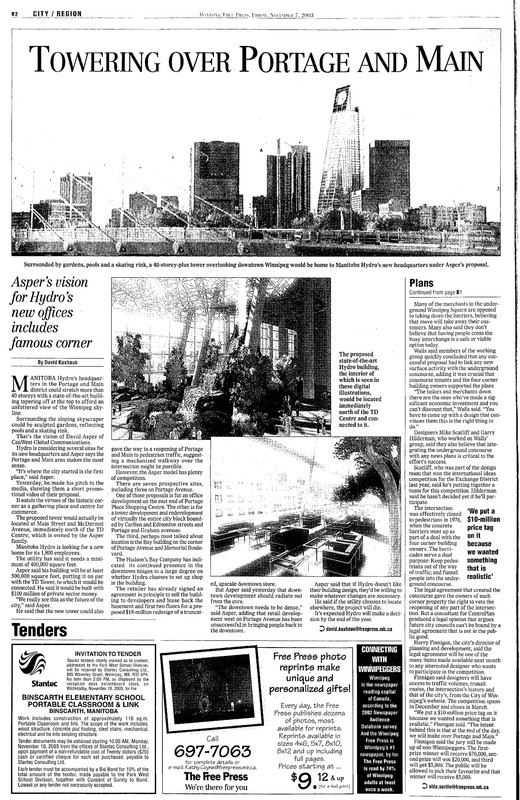 Wasn't the original proposal for the second 201 Portage tower on the site of what is now the courtyard? The Canwest tower was a separate building that was torn down but had formerly housed the Impark office. Rumor is that building got torn down largely to save David Asper seconds getting to his parking spot (aka it was torn down to make a private driveway). And the hotel project is obviously on Main St as was the proposed Hydro Place.
