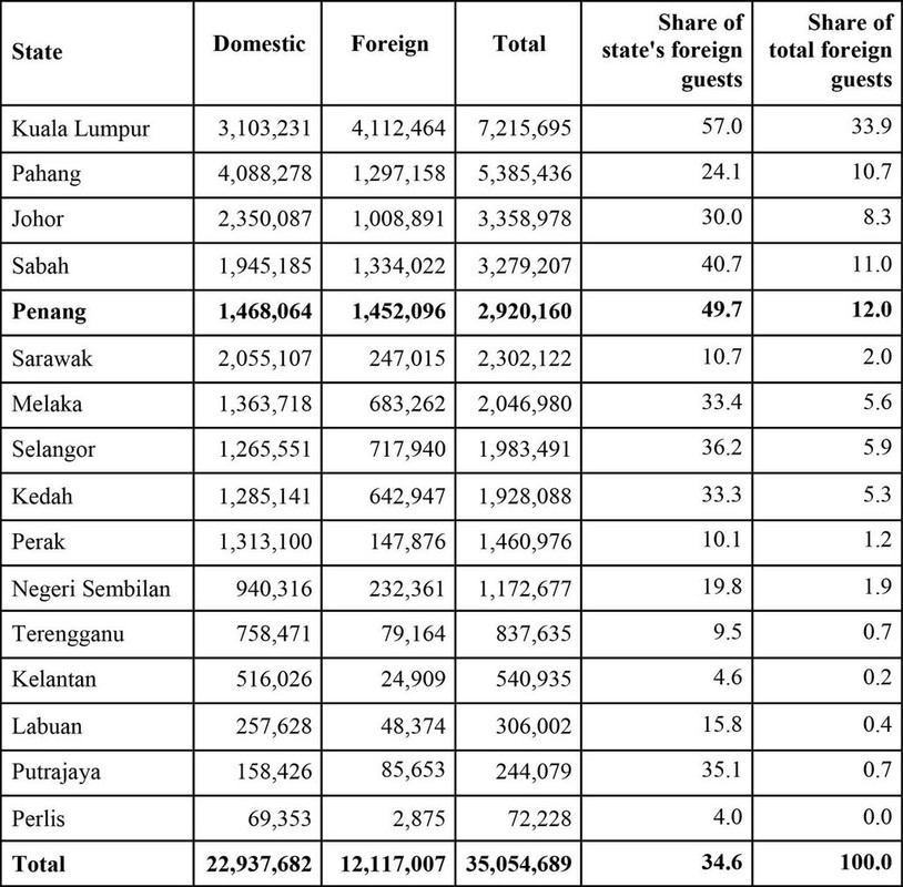 Hotel guests by state in Malaysia, Jan-Jun 2019