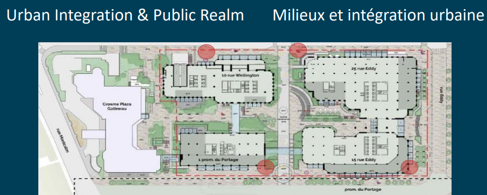 Services publics et approvisionnement Canada (SPAC) prévoit réhabiliter la totalité du revêtement extérieur du complexe parce que son état actuel est considéré comme un «risque». «La façade extérieure qui est en brique préfabriquée se détériore», a souligné Alain Miguelez, vice-président, aménagement de la capitale à la CCN. «Un système de protection en hauteur a même été construit pour protéger les piétons des débris de briques tombantes et l’utilisation de la cour est limitée aux sorties d’urgence. Donc, il faut réparer.»