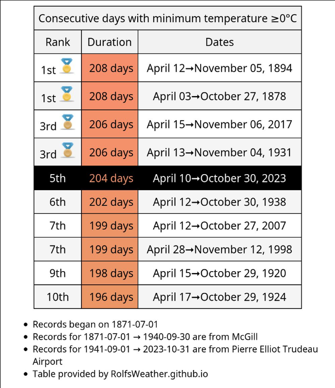 Our growing season ends at 204 days. The 2017 one was slightly longer and the top 2 are from 120+ years ago. So much for "global warming".