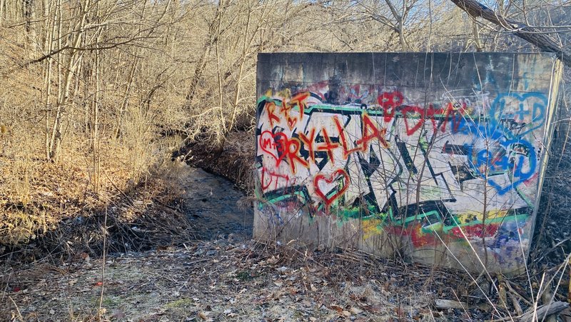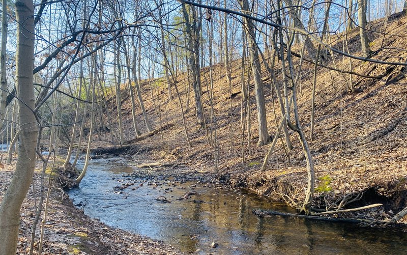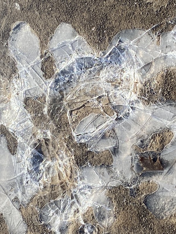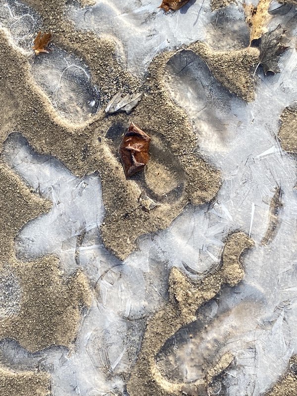Another creek this morning but the highlight was the mini skating rink that formed on the baseball diamond from Saturday's rain and overnight cooling. Walking on it is very satisfying. Would have been even more so if I put spikes on.