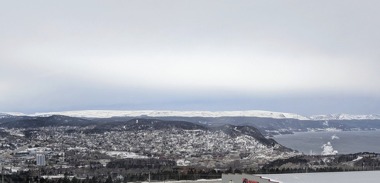It's hurricane-force winds out here, definitely need to brace yourself when walking around. Very little snow compared to St. John's.