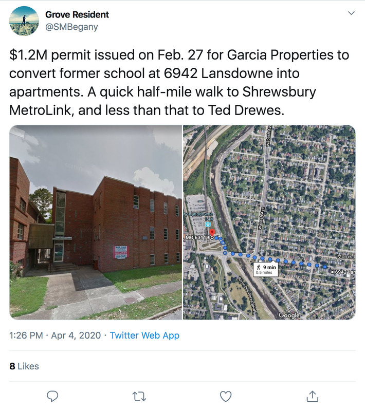 Despite the ongoing economic situation, a lot of projects have been financed and will be starting fairly soon. In regards to KDG, they are a growing firm that is planning multiple projects in the region. 4545 Laclede is another one of their project but movement on that has been slow. Supposedly it is financed so it could start later this year. KDG also acquired 1500 South Grand (Grand and Park) with plans to either convert into office space or apartments. A finalized plan should be made relatively soon. They're currently removing ground floor cover ups to assess the facade along the first floor.