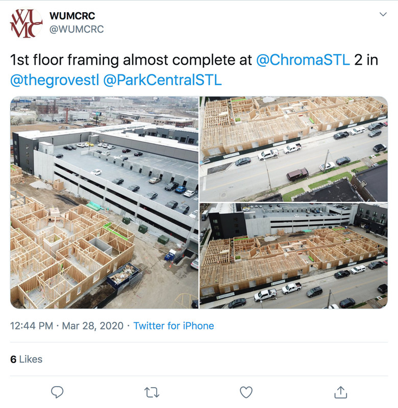 Hue at Chroma STL (formerly Chroma Phase 2) is up to it's 3rd floor in the Northern half of the project.