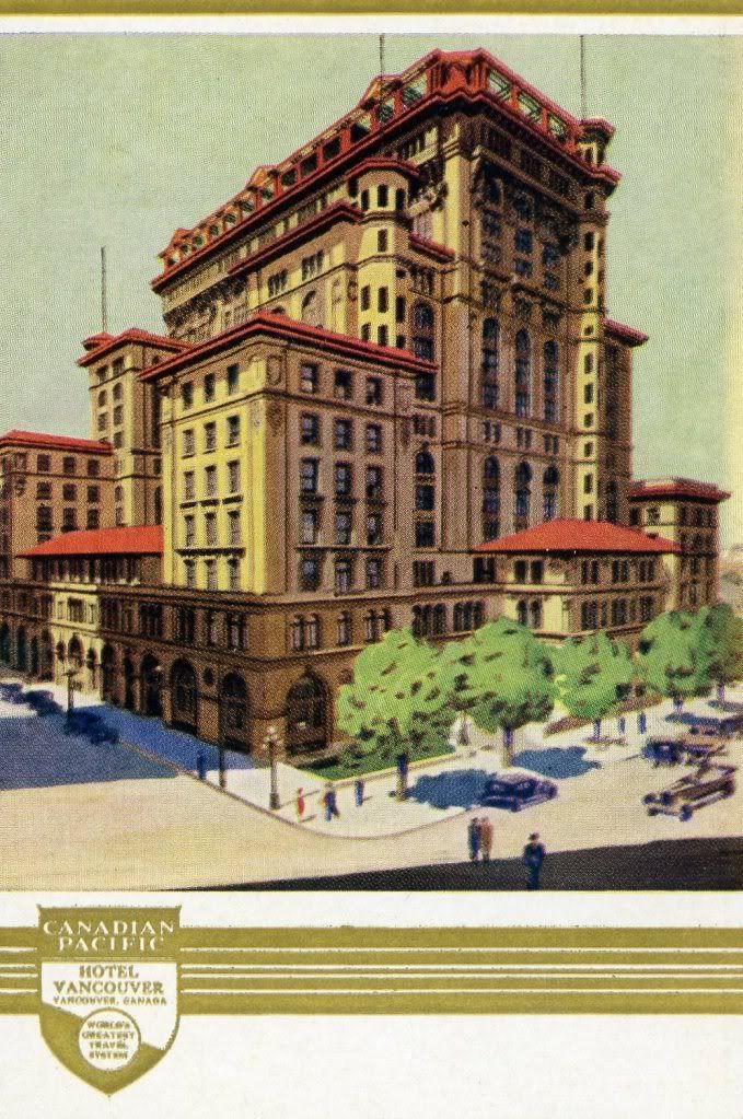 The true second Hotel Vancouver. If you look closely you can see the 1903 wing at far right. Its planned matching wing grew several additional stories, then the centre part of the H was filled in with the flamboyant Edwardian tower. All in all, a fascinating story of early Vancouver's explosive growth told in one building!