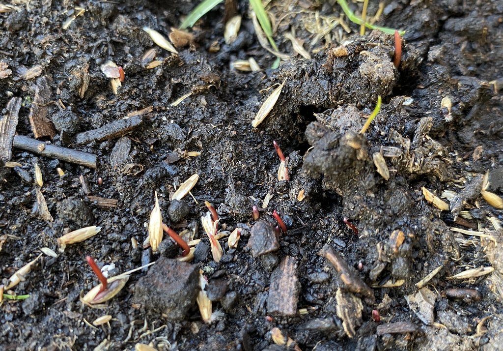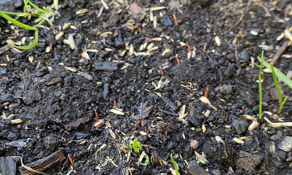 Waiting this long for the seeds to germinate means the birds picked off a lot of seed.