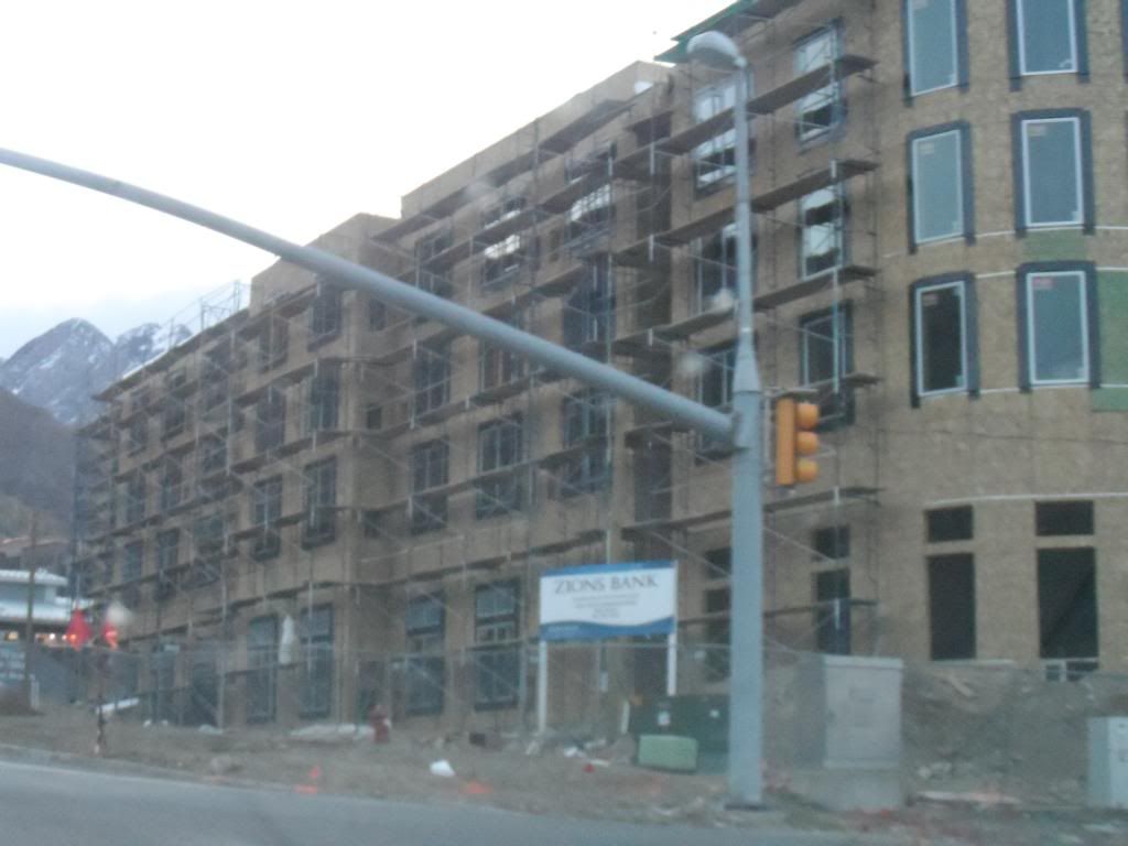 Building simultaneously to the east and west of the ski shop is the rest of the Canyon Slope Square development. The