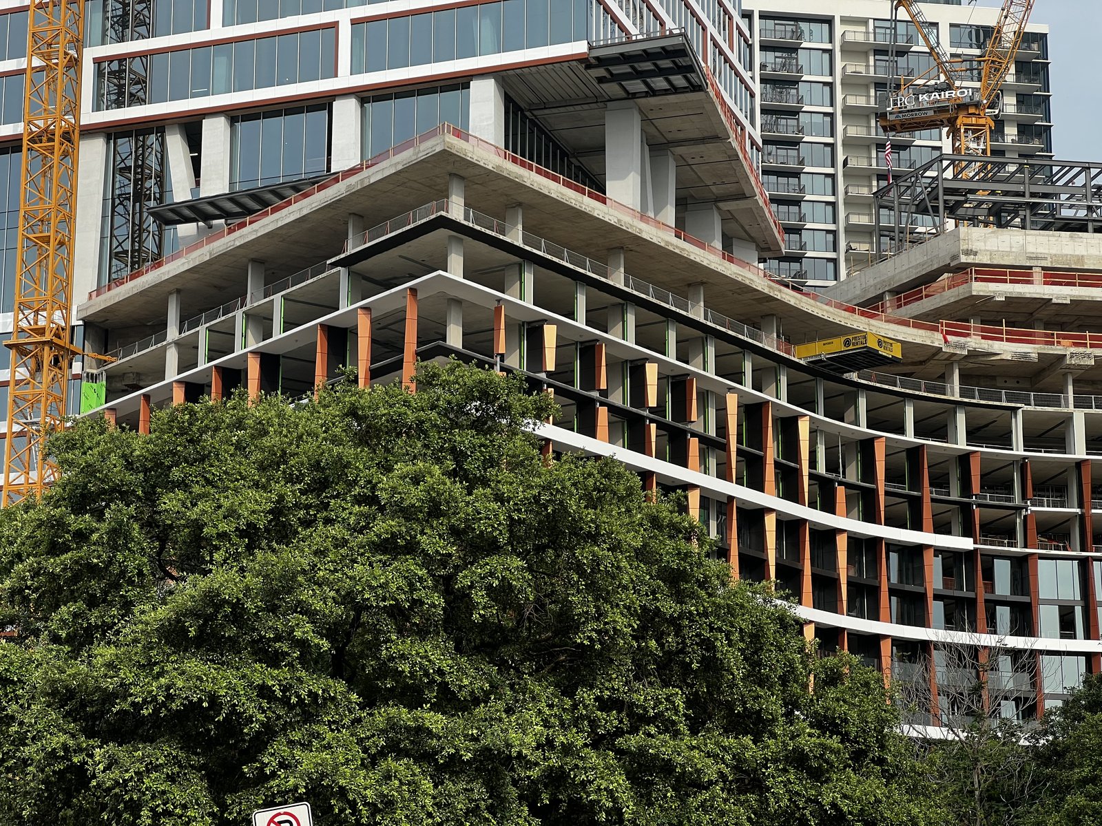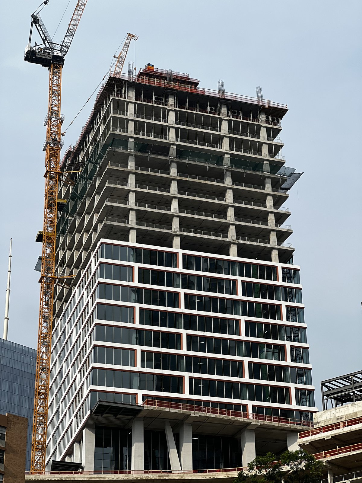 Personally, I don't think the facade of this one will age very well. The aesthetic choice of white with a burnt orange border is more appropriate for a 10-15 story building in West Campus...