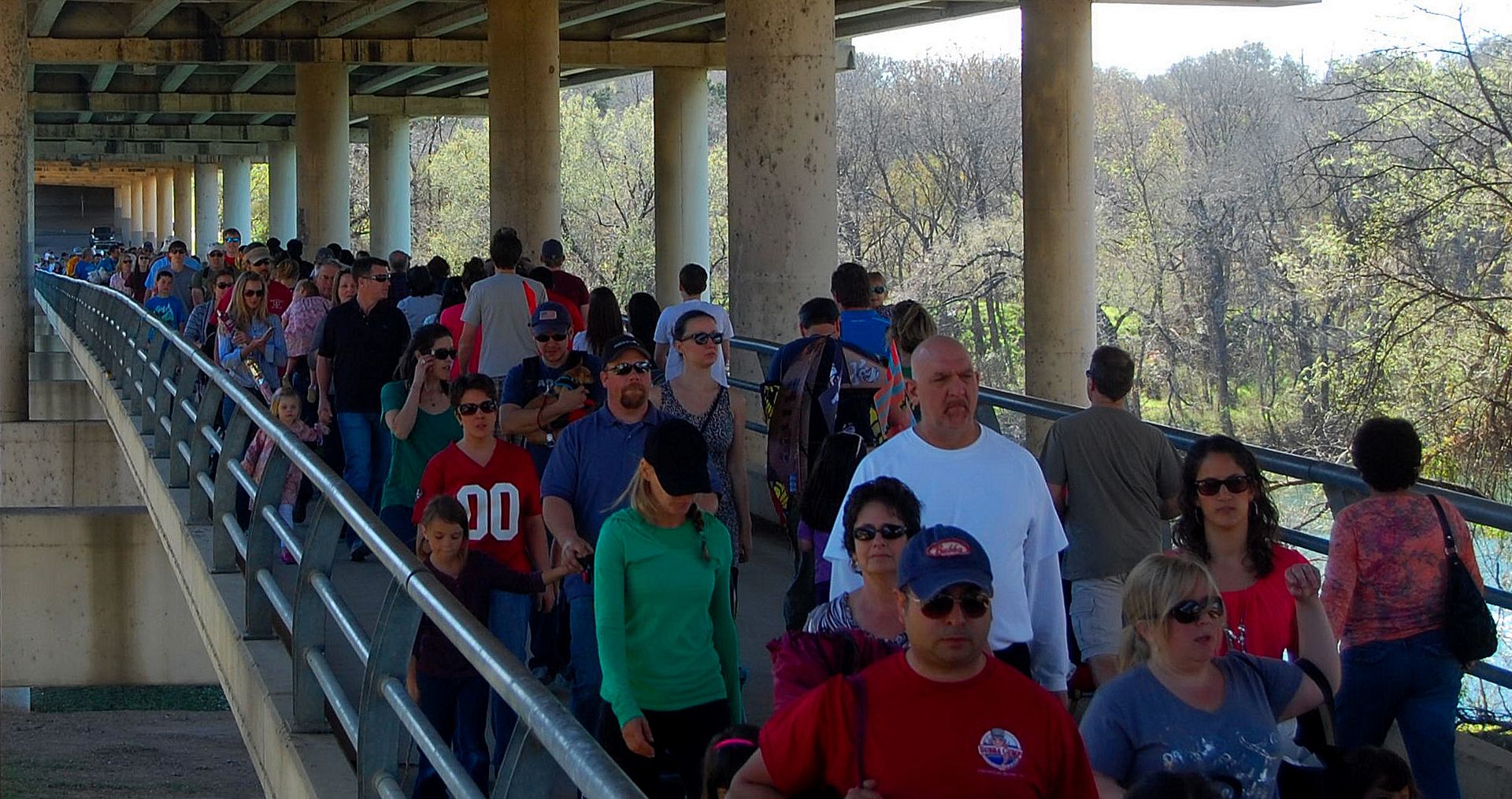 1. The pedestrian bridge under Mopac was full of people