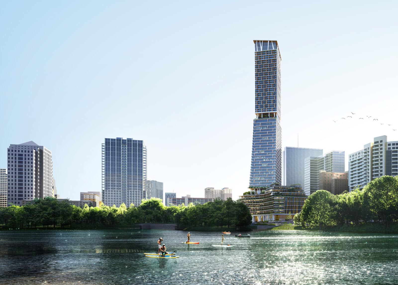 The Waterline has officially topped out at 1,025' per this Community Impact article: