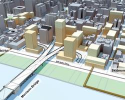 Are they proposing to remove the ramps altogether or simply pedestrianize them? If the onramps were off-limits to cars (as with the Hawthorne ramps), the architects could incorporate this into the design. There's a lot of potential.