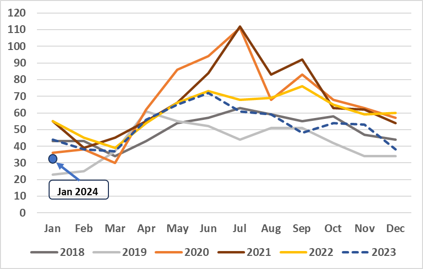 Echoing what some others have been noticing but in graph form (Thanks to marothisu for pointing me to the data a while back). There seems to be a very positive trend in homicides that started ~July 2023 with numbers reverting to pre-pandemic levels (with maybe even some hope of it falling below that level if trends continue). February 2024 has been trending significantly below 2023 as well.
