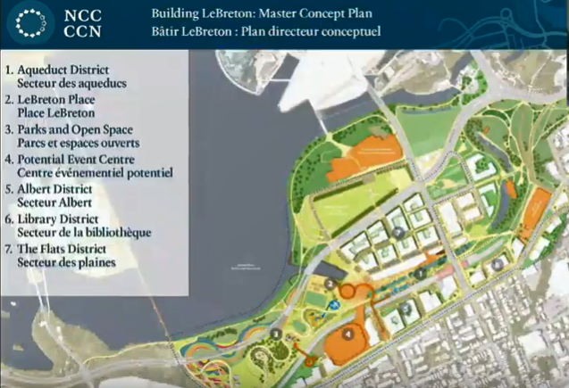 So, new place holder for a future Sens arena. After the collapse of the Rendez-Vous LeBreton (RVL) deal involving the Sens owner (who wanted anyone but him to pay for the arena in exchange for the privilege paying him 50% of the revenue on the LeBreton project), the National Capital Commission (NCC) has come up with a new plan for the 52 acre site, which involves selling the land piece-meal. They've included a site for a potential Events Centre (aka Sens arena).