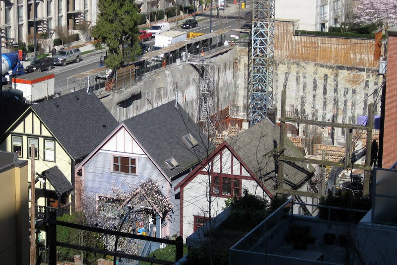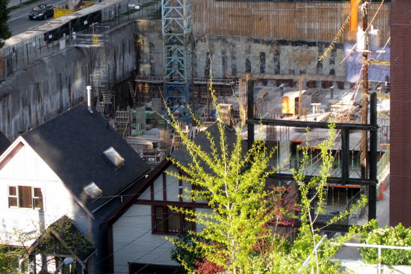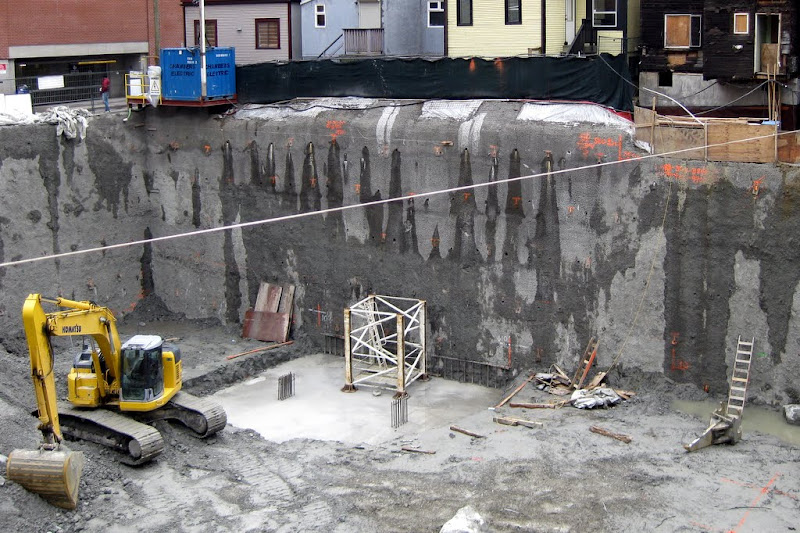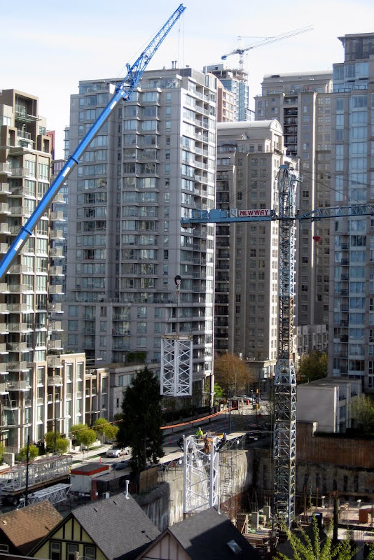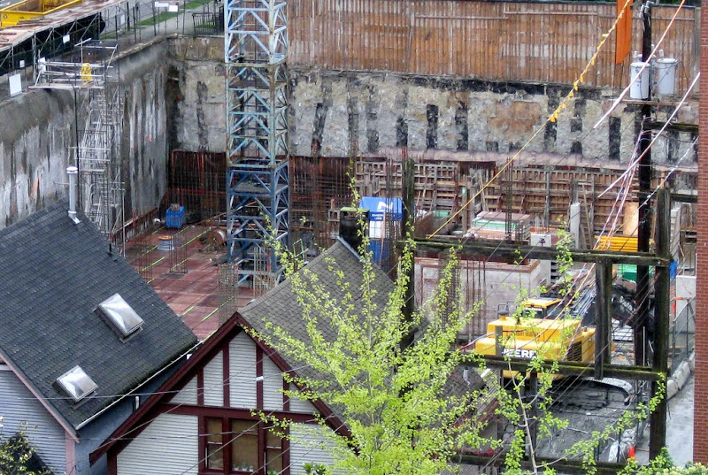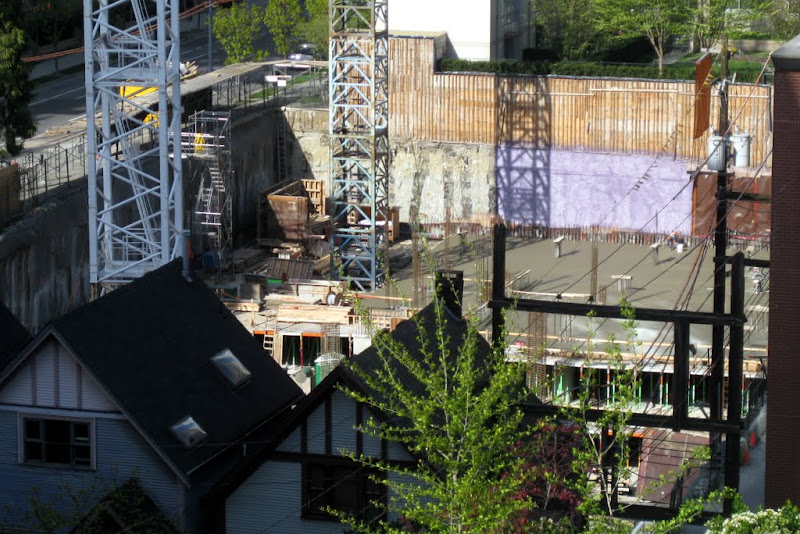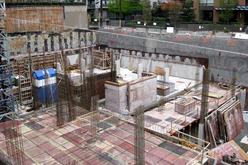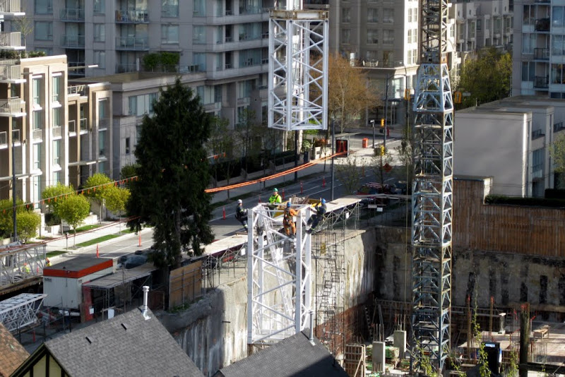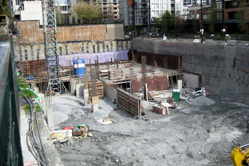 walking by the site it feels that the site is as big as H+H and they had two cranes. Also I always thought they put the crane so it would be beside the tower portion. where the crane is now seems to far from the "tower" part