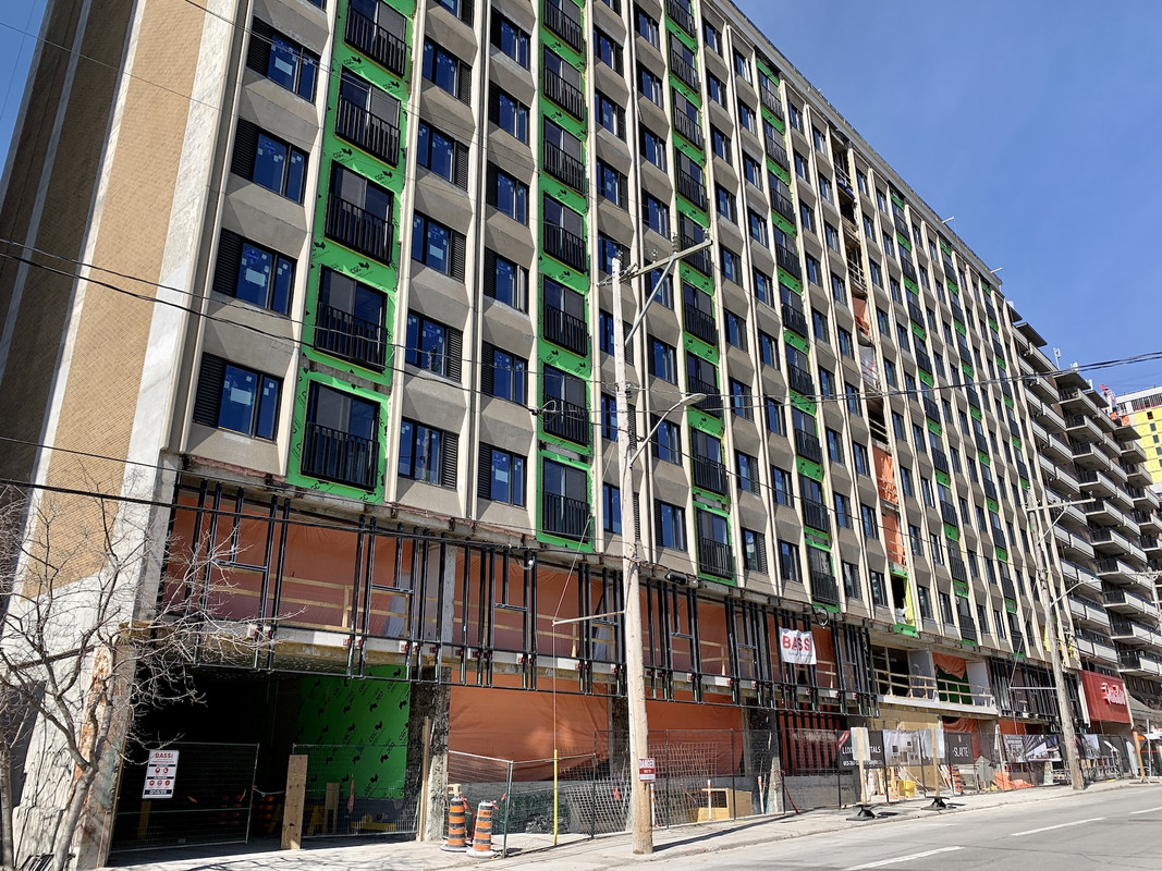 Described as an adaptive reuse project by its developers, CLV Group Developments Inc. (on behalf of building owner InterRent REIT), The Slayte is the transformation of a 1970s office building. Reinvented through the sophisticated design of award-winning architecture firm Linebox Studio and the work of Bassi Construction, the revitalized building promises to combine comfort and convenience with luxury for its residents.