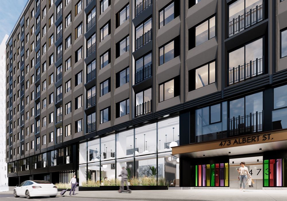 InterRent, together with the experience brought by CLV Group Developments, identified 473 Albert as an ideal building to convert into residential instead of tearing it down. The innovative approach has created a high-end rental community, complete with amenities such as concierge services, underground parking, ground-floor patio oasis, business centre, fitness centre, yoga studio and exclusive rooftop experience that comes complete with an indoor lounge and event kitchen, hot tub, barbecues, pizza oven, lounge areas, firepits and more.