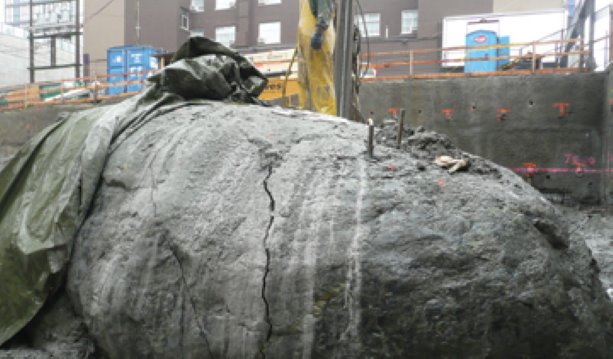 There's a crane base at the bottom of the hole, but it looked like there was still quite a bit of excavated material to lift out before they can install it.