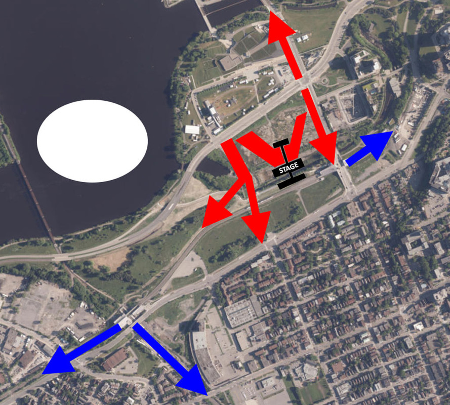 The area between Wellington and Vimy Place, could be repurposed for attractions that used to be at Major’s Hill (formerly Colonel’s Hill). Hasn’t anyone else missed the Giant Tiger train, the Chicken Farmers BBQ, and the little stage down the hill that always had the comedy and high-diver shows? (Although, I would really prefer that Major’s Hill (formerly Colonel’s Hill) be revived as a Canada Day attraction location, adding in the new Kiweki Point facility.)