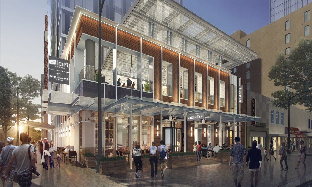 What I do especially like is that it's on a small footprint. One of the things that I feel separates cities like NYC from cities like Houston is the fact that few of their buildings are built on an entire city block. This has a smaller footprint, and allows for much more density. So I think it's a great step in the right direction as far as not waiting to build until you can build something huge. Although....this might only happen on Congress, where the lot sizes are smaller to begin with...