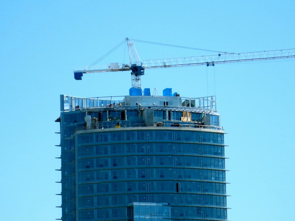 Pic by me today of the top (note the concrete divider on the subpenthouse deck not seen on the model, and what is that concrete box on the subpenthouse deck?):
