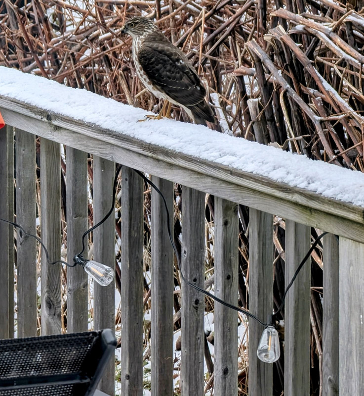 Birds at my feeder had to flee again today, but the hawk didn't eat lol
