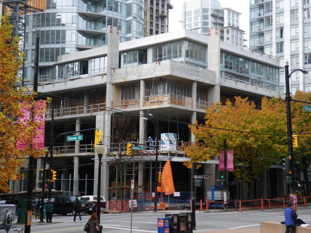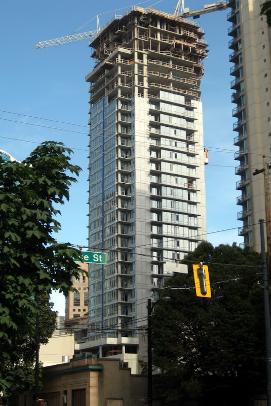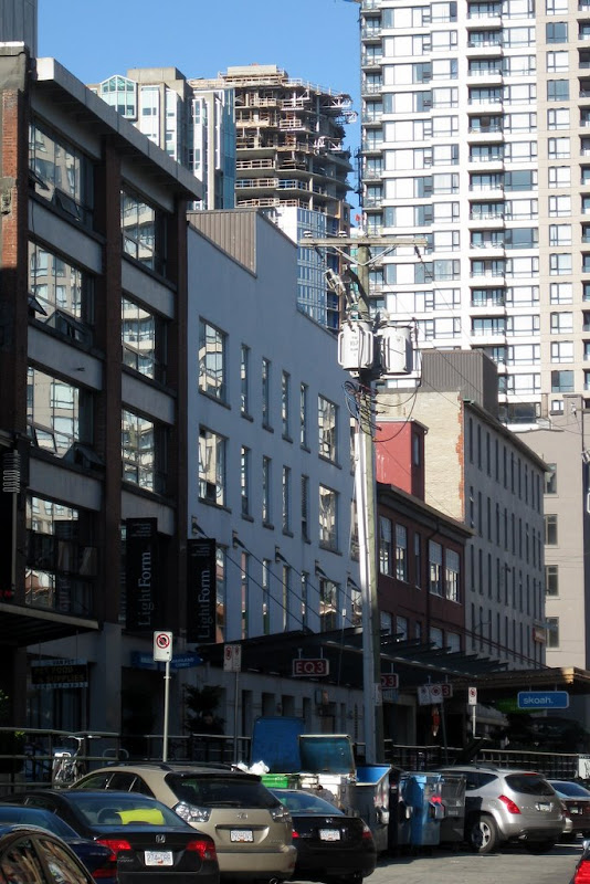 The glass looks OK when looking up at the tower from Library Square and the curve, in the right light, allows the spandrels to blend with the vision glass. The glass looks lousy if looking straight-on at it (i.e. from Seymour)