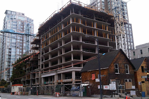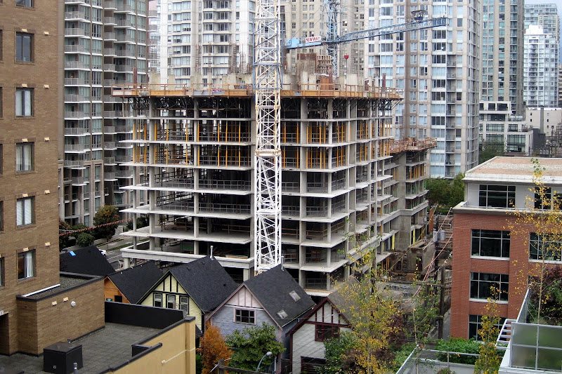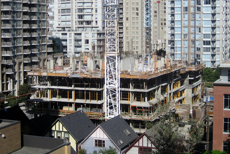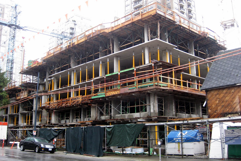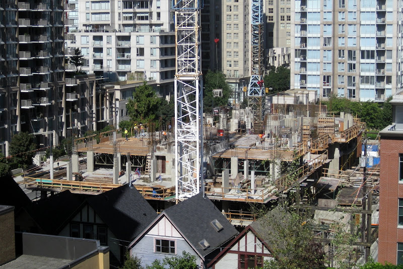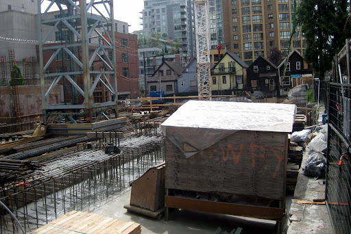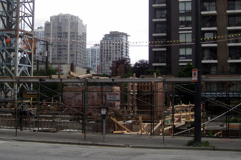 Another one at grade. Thanks for the photos. Looking back through the last few updates I realise that I had not apprecaited that there were five single family homes that were on the street. I know that a couple were relocated to the end of the block but I have been walking around with the idea that there were no more than three on the end there. Five is a much more substantial number and, like I said in my post about The Beasley, it will help make the neighbourhood feel more real and lived in than if the houses had been demolished in the name of progress. Between this cluster of houses and the one on Hamilton between Smithe and Robson I feel like we, as a city, have made some good steps to preserve glimpses of our past while moving ahead full speed towards the future. I so really wish that the project included some marker that an important cultural facility once stood on this site. Whether one went to shows at Richards on Richards or not is beside the point; it was part of the cultural fabric of the city for many years and now it's gone. I felt that the CFOX site on Nelson and Seymour should also have had a marker of some sort for the role it played in the city's cultural life and for all the bands that got a big break in those studios.