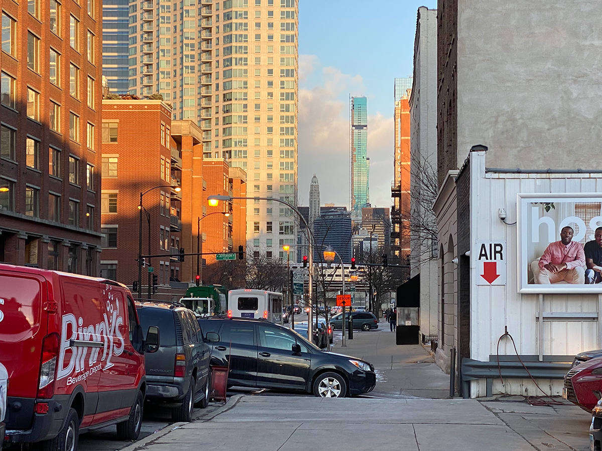 More red buildings would look cool. IDK the name of that red building below (might be the light, the dark reddish hue I'd imagine), but it looks good, breaks up all the white and black.