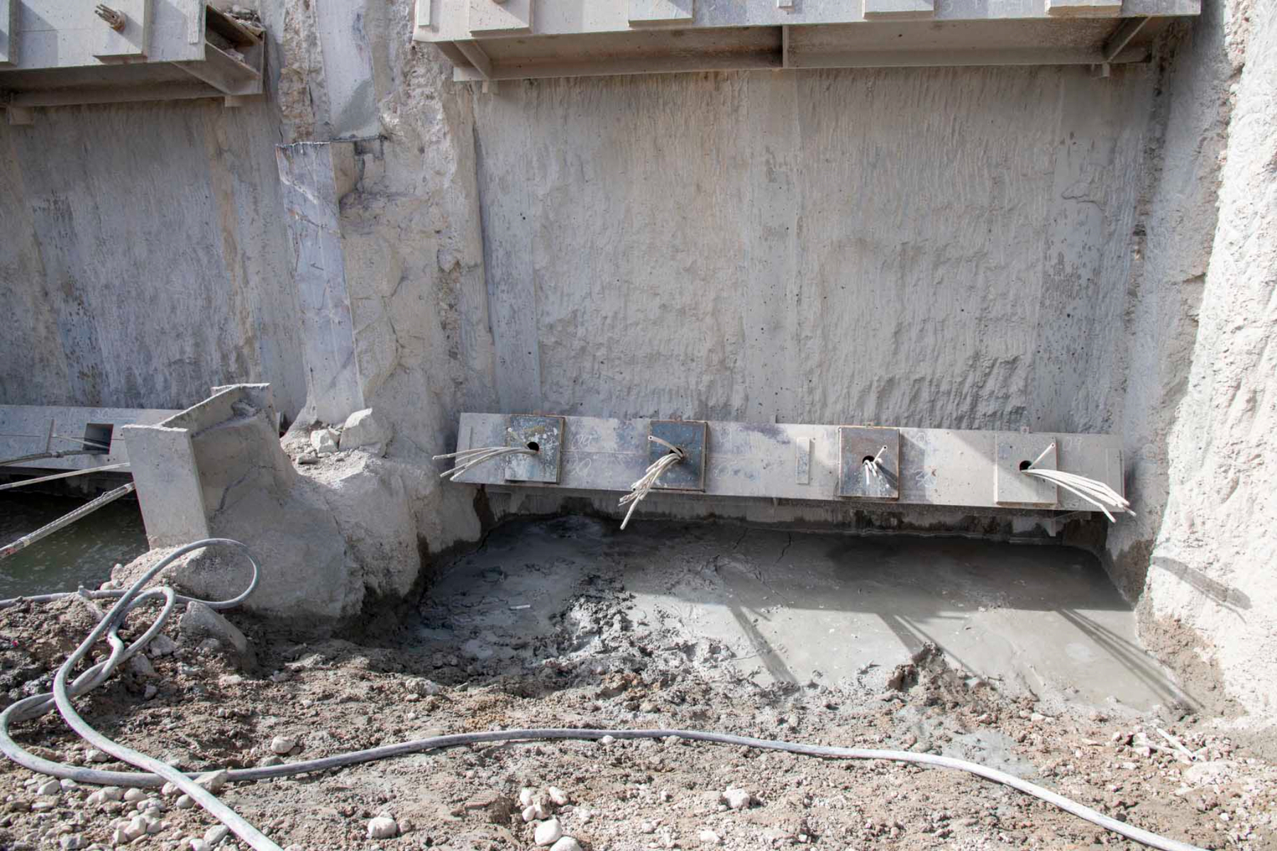 underground sewer lines. Establishment of water mains and project access roads have also been addressed, with work at three utility lift stations under way. Crews also have temporary power to the site. A significant amount of work remains.