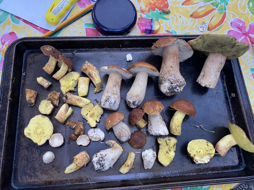 Mushroom harvest way down this year due to the drought. But my MIL is like a water diviner, but for mushrooms. Her fungi senses direct her to places no one else would know to go (private property without permission, but so expansive that the owner has no idea). These two batches were found in the exact same spot one day apart despite no rain occurring in between.