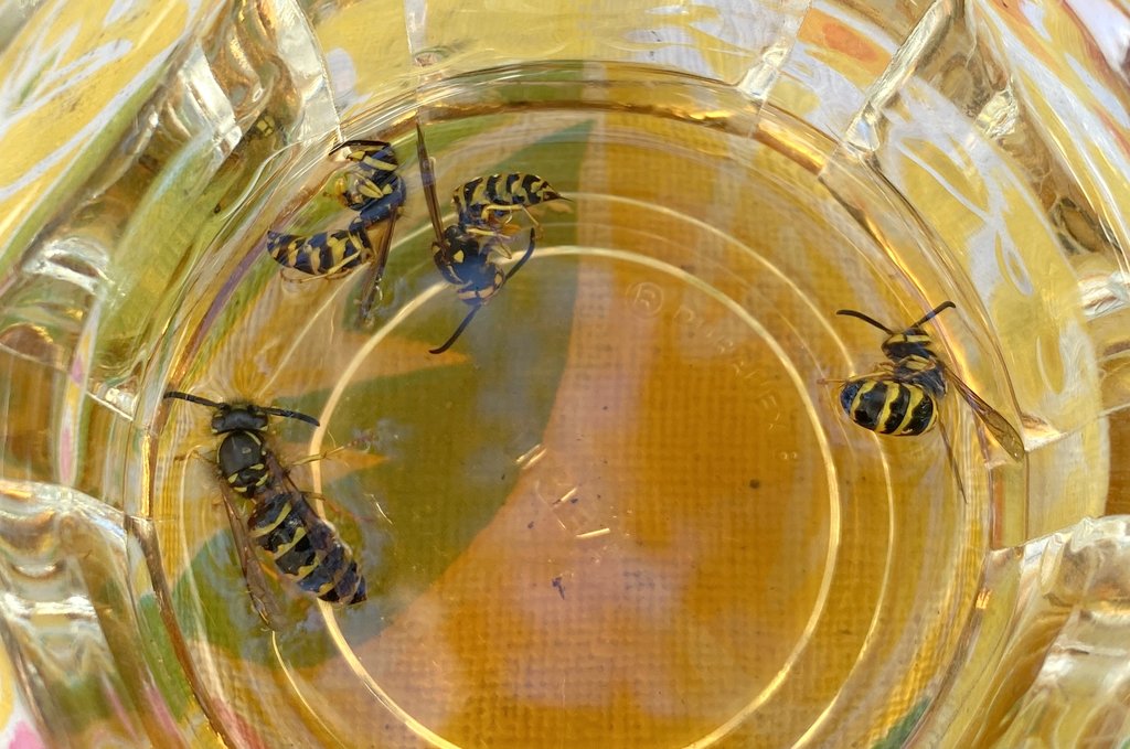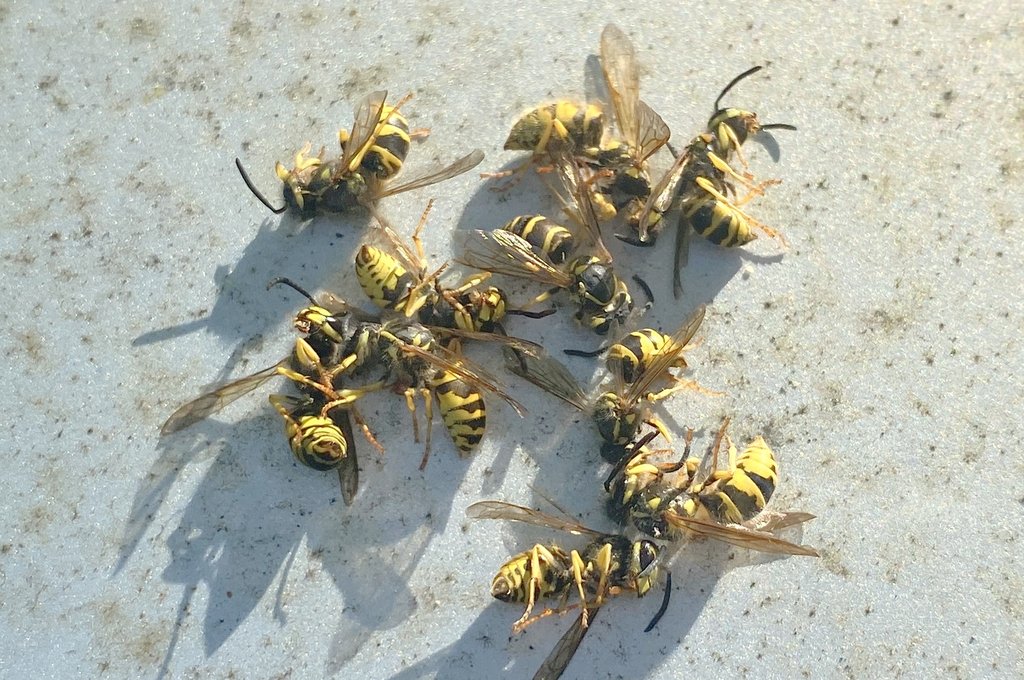 Insects definitely still out in force. And my daughter got stung on her ankle while on the hammock. So you know it was gonna be blood bath after we patched her up. They also ruined a couple of our drinks. The other insects that eat dead insects are having a feast right now. There must be a good 200 bee/wasp carcasses on the ground right now that still need to be scavenged. You're welcome.