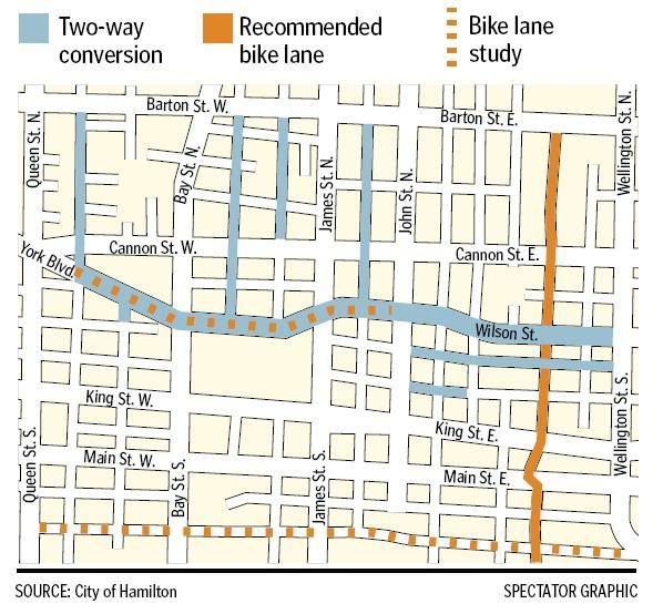 I don't mean to suggest we stop the wave at each light. Lights can still be timed in blocks, with a forced stop every 3 or 4 major blocks. New timing should encourage reduced speeds as well. Mainly, the expectation of hitting the green wave at 70km/h needs to be removed from the psyche of passers-through. The timing is set up to be too fast and too furious. And making it less convenient will reduce the number of cars travelling King and Main. There are other ways through and around the city, and we need to create an incentive to take these routes. For instance, without traffic it is 13 minutes from the QEW@Burlington Street to the Main West 403 ramp via the skyway. It is also 13 minutes from the QEW@Burlington St to King at Dundurn via Burlington/Cannon/Queen. We need to make the ring accesses easier to use for through traffic. If that means making the through routes harder to use, then it's worth that "sacrifice" in return for any amount of positive effect on the downtown for pedestrians, cyclists, elderly, children... the residents who have invested their own personal lives into our core.